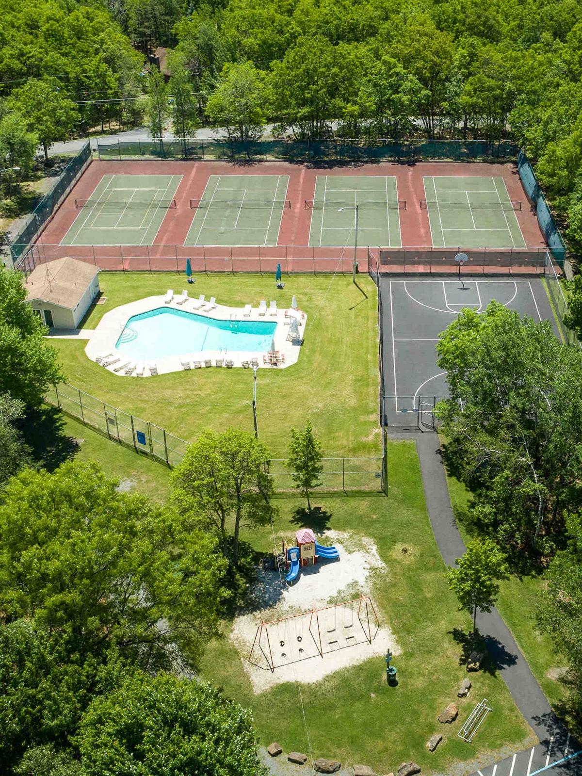 Relax and unwind at this stunning Poconos vacation property. Melt your troubles away with a dip in the hot tub or experience our custom-built Finnish-style sauna. This property has been thoughtfully remodeled throughout with warm wood floors, hand crafted ceramic tiles, extra comfortable beds, and custom artistic details, creating a truly unique and luxurious feel. Relax in the spa-like bathroom, sit by the firepit, or enjoy the lakes, pools, tennis courts or other amenities in the community.