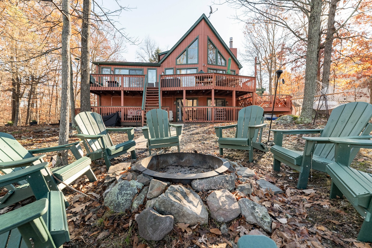 A stunning chalet ideally situated in the Pocono mountains. Your destination for a weekend escape or a longer stay all year round! Outside one can enjoy a natural setting in a beautiful 1-acre private wooded property, hot tub, two fire pits, a deck for morning coffee, or a delicious BBQ. Our home offers a tranquil interior atmosphere and home is conveniently located near all Pocono Mountains' seasonal activities. Whether you want to unwind or recharge, our home provides the perfect retreat.