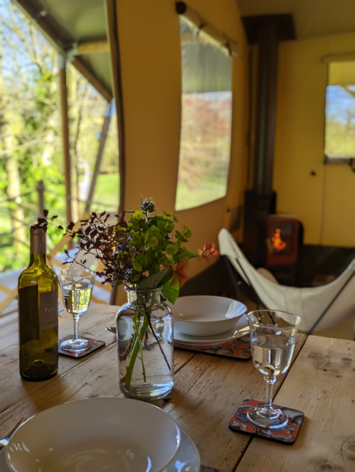 Who said camping can’t be comfortable? Mixing essential luxuries with a slice of outdoor holiday adventure makes glamping the contemporary way to camp. So ditch the soggy, cold tent and embrace a toasty-warm bed, heating, bathroom, and dine-in style with a fully equipped kitchen. We have three safari tents, each individually designed inside with simple but sumptuous style, sleeping up to 6 people max comfortably in 3 separate bedroom areas.