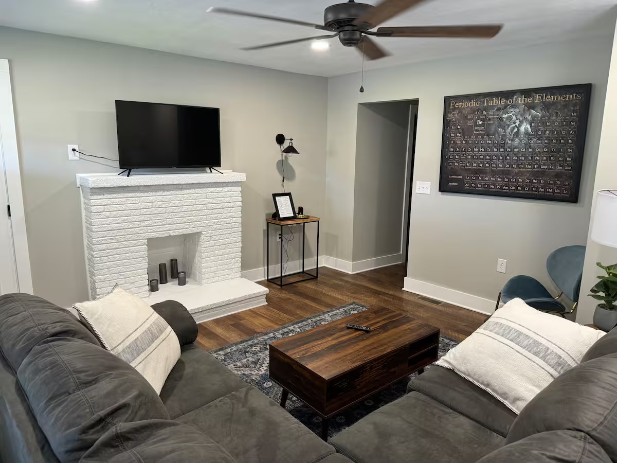 Welcome to our charming home, thoughtfully designed to provide everything you need for an ideal visit to Johnson City. The space features a relaxing open living room, plus a built-in dog room, where you & your loved ones will create unforgettable moments. Dine & enjoy time together over a meal cooked in the fully stocked Kitchen. Two comfortable bedrooms offer a retreat to relax & unwind after exploring our beautiful area. Wake with a smile & enjoy our thoughtfully supplied coffee & tea bar.