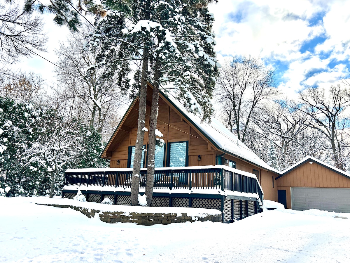 Welcome to The River Birch Cabin, a cozy A-frame in Lake Geneva, Wisconsin. Featured in Madison Magazine, this updated 1966 cabin offers modern comfort and rustic charm just two blocks from Lake Como and minutes from downtown Lake Geneva. Enjoy vaulted ceilings, an electric fireplace, outdoor grill, firepit, and the adorable Little Birch A-Frame playhouse. Pet-friendly and perfectly located, it’s an ideal getaway for couples, families, or friends seeking relaxation and nature.
