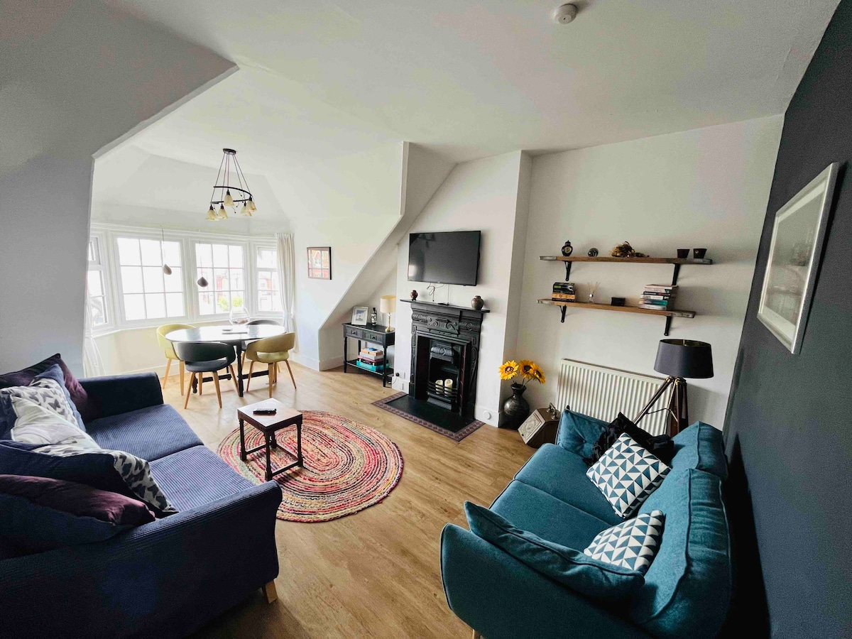 This large first floor apartment is in a great location. Just yards from Devonshire park tennis and theatre, and even closer to the seafront, the iconic South Downs are just at the end of the road, perfect for the end of the South Downs Way. If you are lucky and stay in the winter you might be to see the murmerating Starlings down at the pier at dusk. Whatever your reason for visiting Eastbourne, it's worth the trip, 90mins on the train and well connected once you arrive.