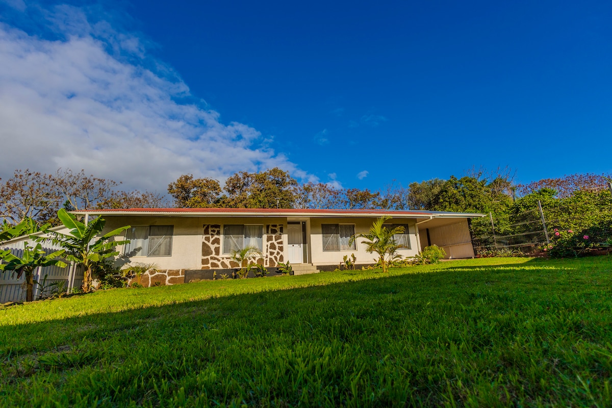 Disfruta del encanto simple de ėste alojamiento acogedor con un toque rústico entre la naturaleza , con una vista hacia el volcán Rano Kau, y cercana a playas , al complejo arqueológico Tahai donde se puede apreciar los mejores atardeceres de la isla , Jardin botánico, Museo y otras atracciones