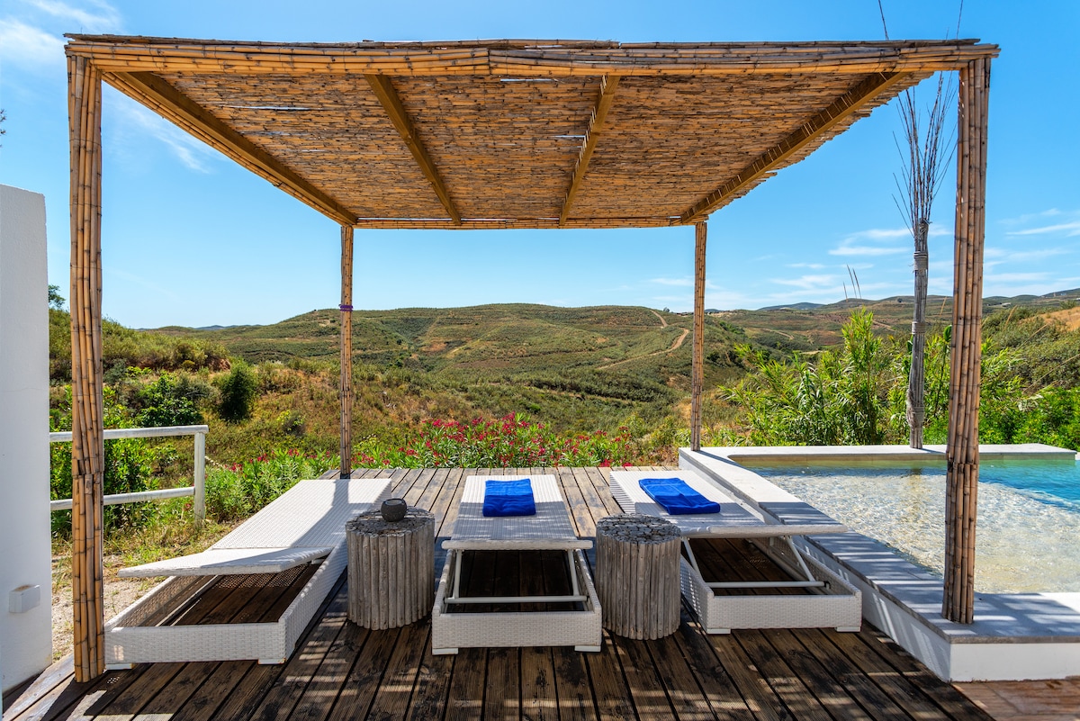 Monte do Cansado is a small country house with a magnificent view over the hills of Tavira. With 2 bedrooms, one bathroom, a huge open-space kitchen and a large sunny terrace it is ideal for beach or hiking holidays in the eastern Algarve. It's central heating in every room makes Monte do Cansado a cozy retreat after long hikes or bike tours on cooler winter days. The big swimming pool with a magnificent view of the valley is shared with the guests of Casa do Pátio and the owners.