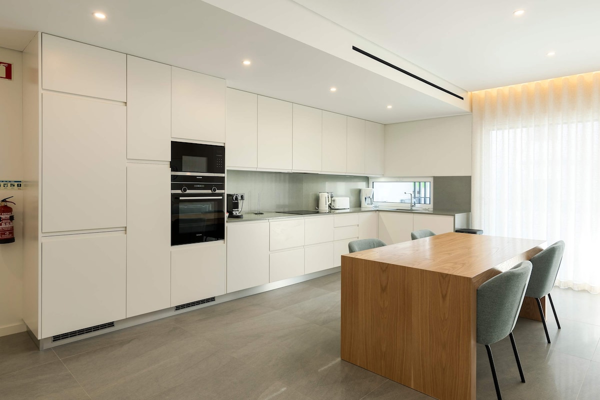 Luxurious penthouse apartment located in the absolute center of downtown Faro. In this brand new apartment, guests will be able to experience high end materials and furnishings, bright and ample areas, absolute privacy, a fully furnished balcony, a fully equipped kitchen and laundry room, and the convenience of being steps away from the marina, bars, cafes, restaurants, a supermarket and all transportation options, making this one of the most coveted apartments in Faro.