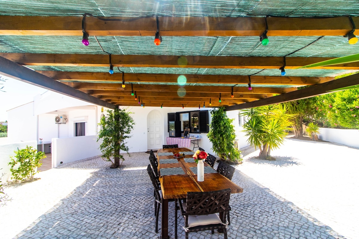 A SILVES : chambre d'hôte CLIMATISEE dans maison typique rénovée, salle de bains attenante, PETIT DEJEUNER INCLUS - Terrasse privée avec JACCUZY, salon sous pergola, espace repas que pour vous - Accès cuisine équipée, plancha, vaisselle, lave linge - A partir de la maison vous visitez toute l'ALGARVE, ALBUFEIRA, BENAGIL, SAGRES, TAVIRA, PORTIMAO, OLHAO, LAGOS - A PIED centre historique, château, musée, restaurants, commerces, MERCADO poissons, 3 supermarchés - A 150 m environ parkings gratuits.