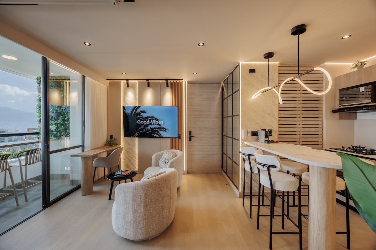 Experience Medellín from the heights of El Poblado in this elegant luxury apartment with panoramic city views. Modern design, high-speed Wi-Fi, full kitchen, and access to pool, gym, and coworking area the perfect balance of comfort and location.