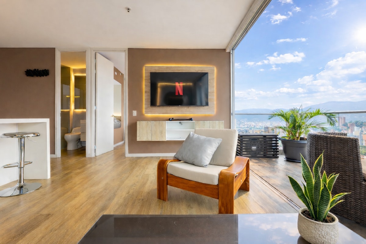Brand new building (Hotel Urban Studios) & luxury apartment located in the best sector of El Poblado (El Tesoro), is perfect if you are looking for a peaceful and beautiful space. - Luxury interior design, furnishings - Spectacular views from Living Room, Bedroom, & Office - Full Washer & Dryer - Air conditioner In the Bedroom - 55¨Smart TVs LG - 200GB+ Wifi - Heated Pool & Jacuzzi - Steam Room - Complete modern gym - 24-hour security