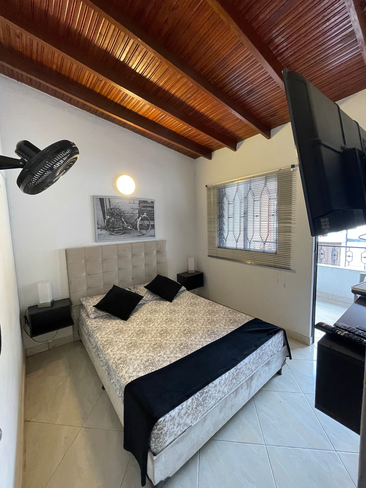 舒适:空调、双人床、浴室和私人阳台