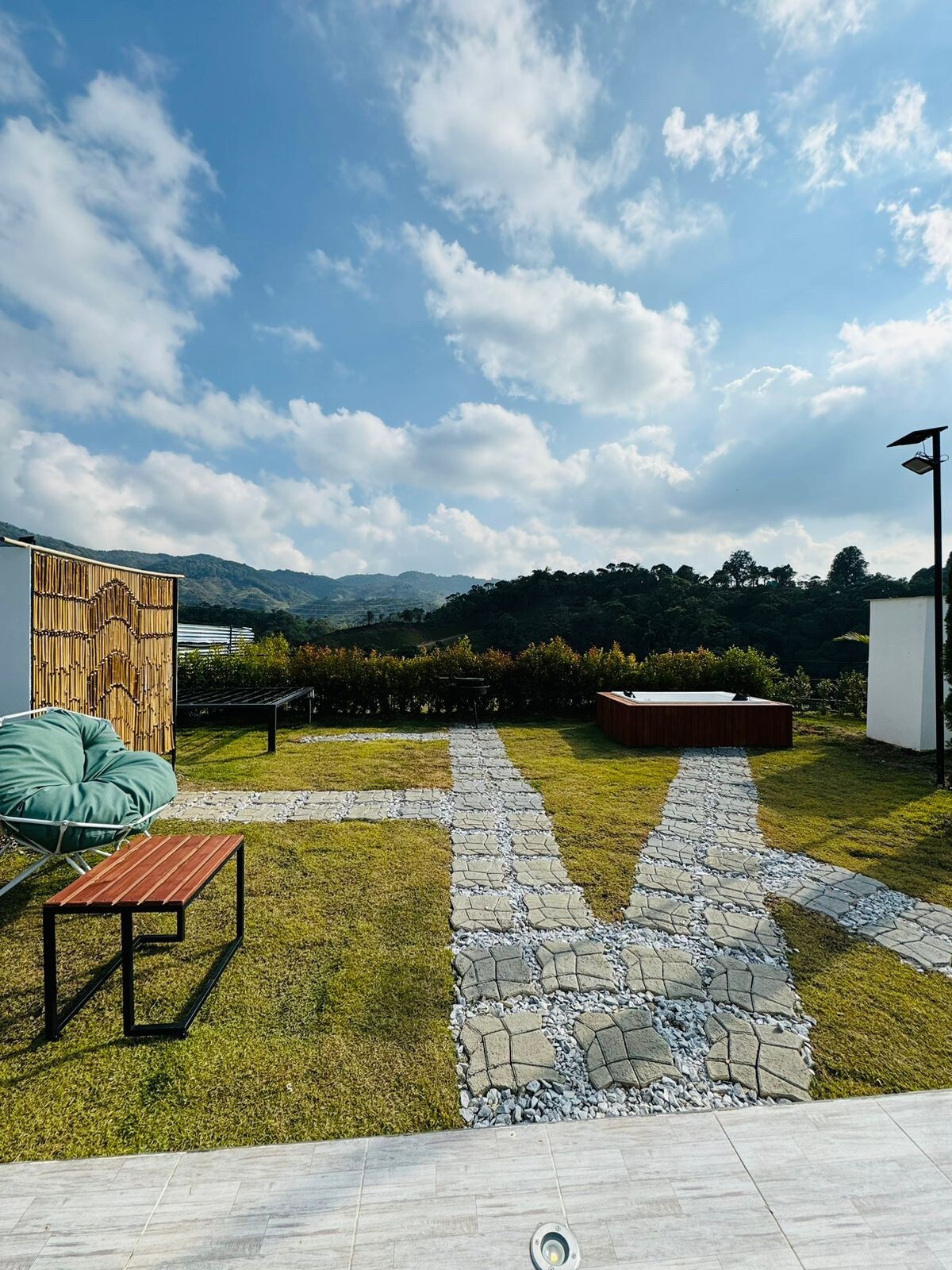 Glamping con Hermosa Vista Es un espacio de más de 900m2 solo para ti rodeado de naturaleza y arboles excelente ubicación A 40 min de la ciudad de Medellín 20 min del aeropuerto 50 min del peñol-guatape Completamente dotado Cafetera (cafe y aromatica incluida) Jacuzzi cocn agua caliente Baño privado Domo de 25 m2 Zona BBQ Fogata Ducha al aire libre Malla catamarán de 3x3m Parqueadero Contamos con una mayordomo las 24 horas horarios de check-in y check-out FLEXIBLES segun disponibilidad