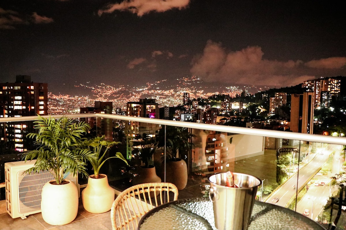 Brand new building (Hotel Urban Studios) & luxury apartment located in the best sector of El Poblado (El Tesoro), is perfect if you are looking for a peaceful and beautiful space. - Luxury interior design, furnishings - Spectacular views from Living Room, Bedroom, & Office - Full Washer & Dryer - Air conditioner In the Bedroom - 55¨Smart TVs LG - 200GB+ Wifi - Heated Pool & Jacuzzi - Steam Room - Complete modern gym - 24-hour security