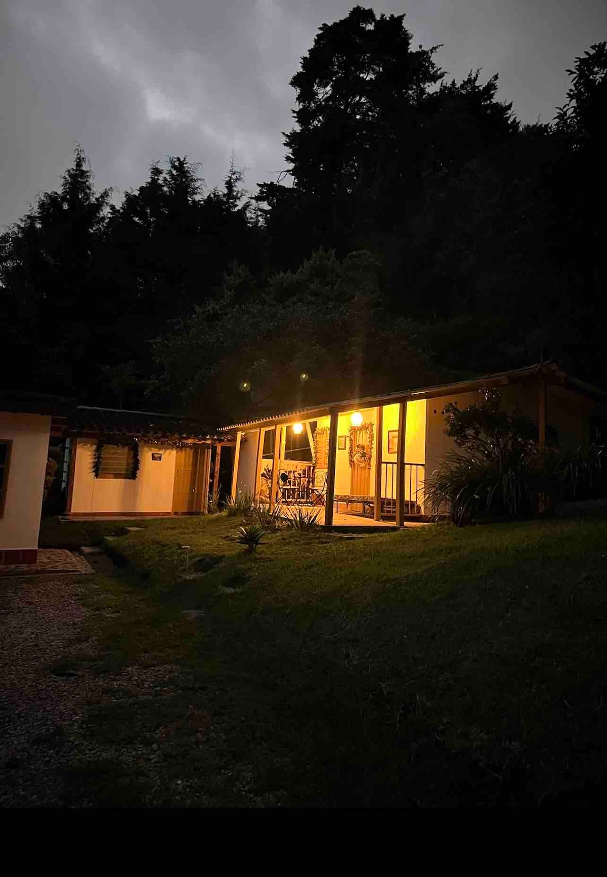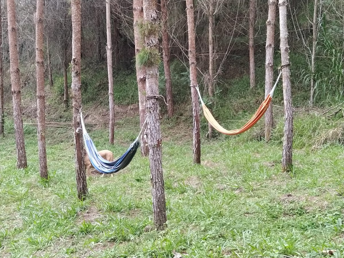 Disfruta de la sencillez de este alojamiento tranquilo y céntrico 5’Aeropuerto JMC Cabaña privada en ambiente campestre con acceso a transporte público. Zona verde, parqueadero, chimenea de bioetanol, asador y fogata. ubicado cerca de los atractivos turísticos de Medellin, Guatape y comuna 13 Acceso a nuestros jardines y veladas nocturnas al rededor de una fogata. Adicionales: Snacks, cerveza, leña, vino artesanal de arándanos y café orgánico colombiano, tours con guías locales bilingües.