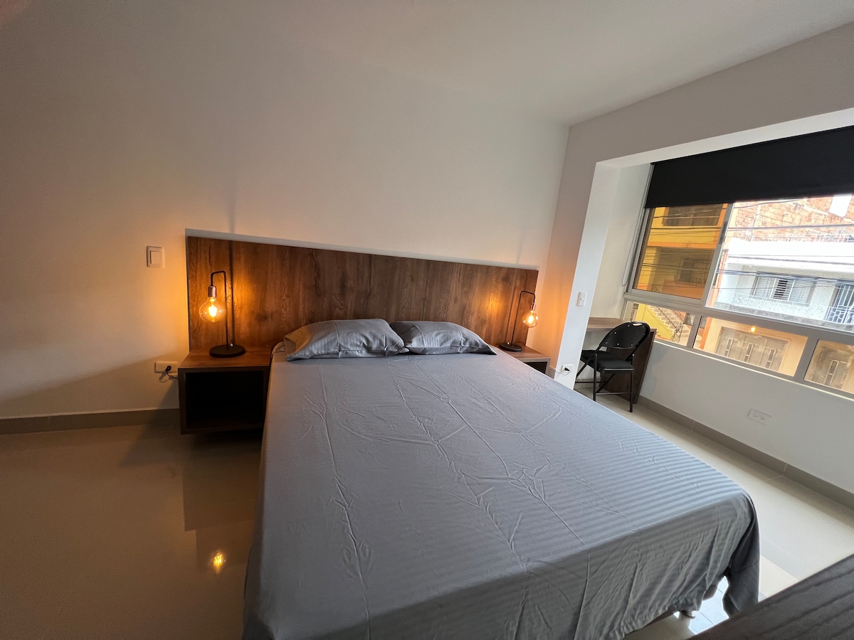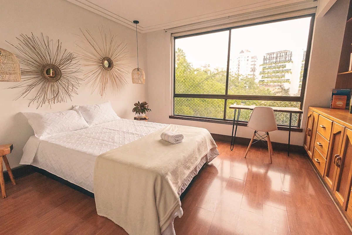 Strategic location to enjoy Medellín Private apartment in a central area, close to Laureles' nightlife district, the Belén Sports Complex, and with easy access to public transportation. It features a fully equipped kitchen, private bathroom, desk, TV, and fast wifi. You can also relax in the shared outdoor areas surrounded by nature, with a terrace perfect for working out or unwinding while listening to the waterfall in the fish pond.