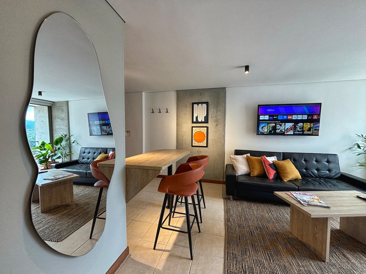 This is it! Everything you’re looking for is right here: • New soundproof windows • Beautiful and modern loft-style apartment • Located in the heart of El Poblado • Fully air-conditioned • Prime location close to everything you need • High-speed internet • Bright and comfortable workspace • Good quality furniture • Fully equipped kitchen • Smart TV • 24-hour front desk security • Walking distance to Parque Lleras and Provenza Street • Close to supermarkets, restaurants, and coffee shops