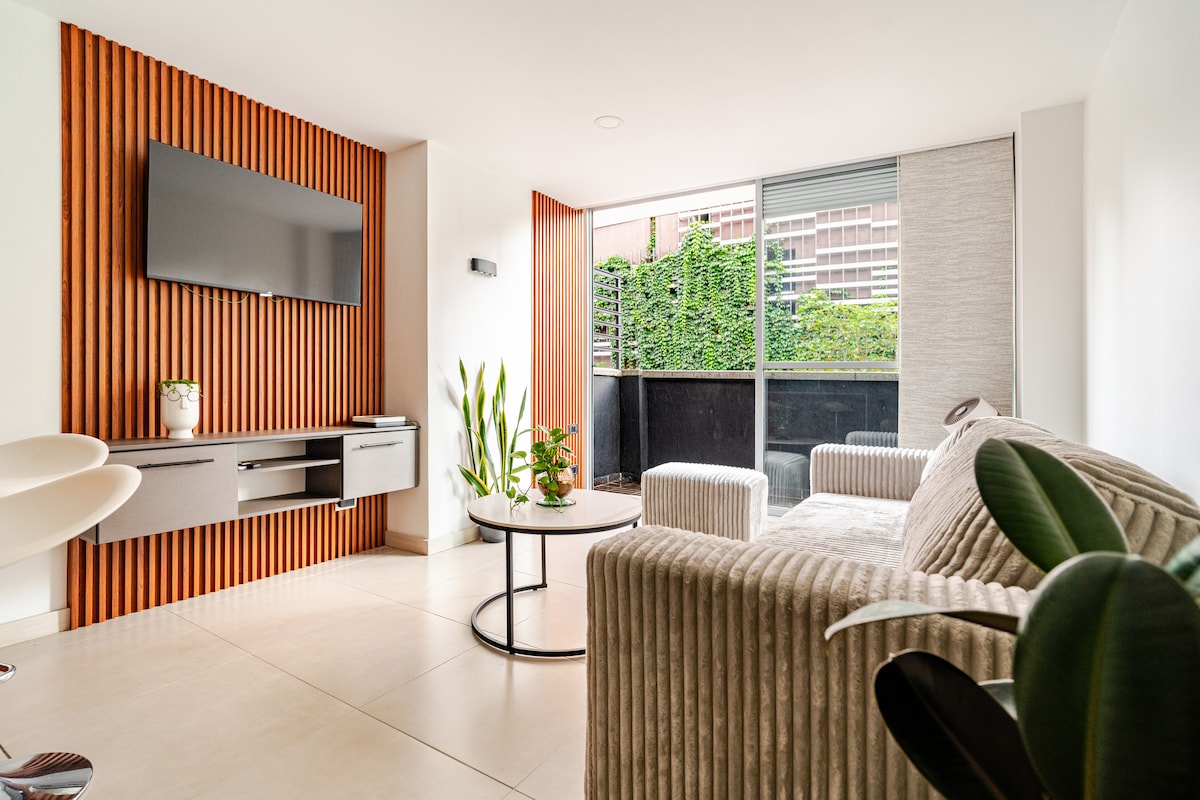 Discover the ultimate modern studio experience! Our stylish 50m² space boasts a balcony with nature views, perfect for savoring your morning coffee or unwinding with a glass of wine in the evening. Stay connected with our 300 MG stable wifi for working and enjoy your favorite shows on the smart TV. We have king size bed and washer. *Zero tolerance against sexual tourism. *Please see our house rules. *Colombianos deben pagar IVA adicional al pago de Airbnb.