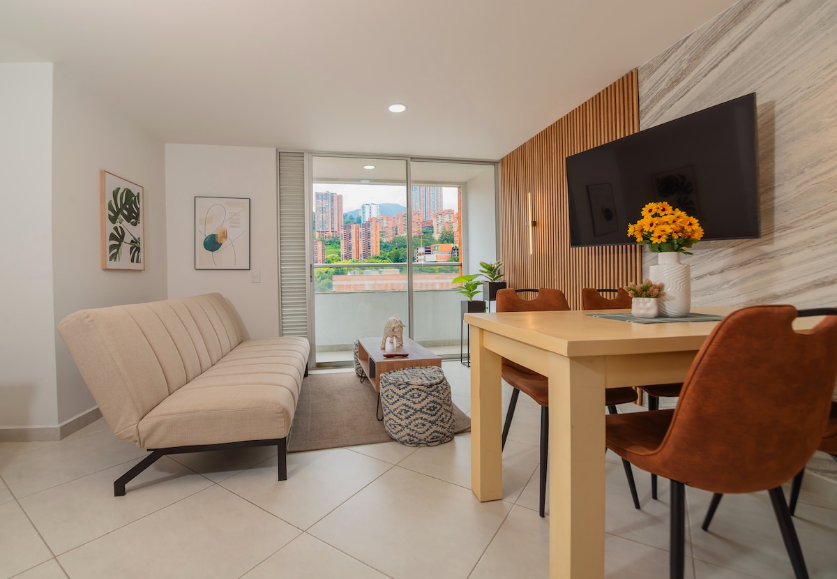 Apartamento nuevo totalmente amoblado de 51 mts + 15 mts de terraza. Disfruta de este apartamento en un lugar tranquilo y central, ubicado en el Poblado, uno de los sectores mas exclusivos de Medellin, a tan solo 5 minutos caminando de la estación Aguacata del metro y 10 minutos caminando a uno de los mas grandes centros comerciales de la ciudad. El edificio Go living cuenta con acceso gratuito a zona de coworking y gimnasio, ademas cuenta con servicio de seguridad 24/7 y parqueadero gratuito.