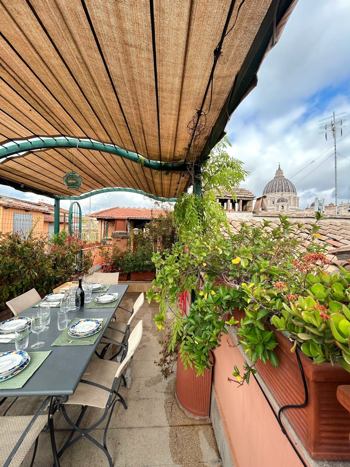 Attico finemente ristrutturato con vista Pantheon da dove godere nella quiete delle sue terrazze private, colazioni e drink serali. Arredato con alcuni iconici pezzi di design, ospita opere di un artista contemporaneo e una piccola biblioteca. Si sviluppa su due livelli: al primo, camera doppia, cameretta singola, bagno; al secondo: camera matrimoniale con bagno en suite, piccola cucina, salottino, due terrazze a livello. Wi-fi, climatizzazione, lavasciuga, lavastoviglie, forno, Smart TV