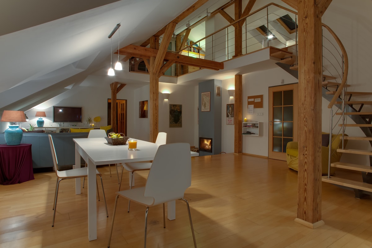 Formerly the palace of the family Šuflaj, one of the homes of the famous Grič Witch, a place where composers created and musicians played, this is a home of travellers, world wonderers, writers, artists, poets and painters. More a museum then apartment. Situated in the heart of old upper town Zagreb, tourists hotspots, the Strossmayer walkway, the Grič Park and the St. Markos church, this exclusive cosy home of 75m2 with a gallery above and a fireplace is the perfect place for your Zagreb trip.