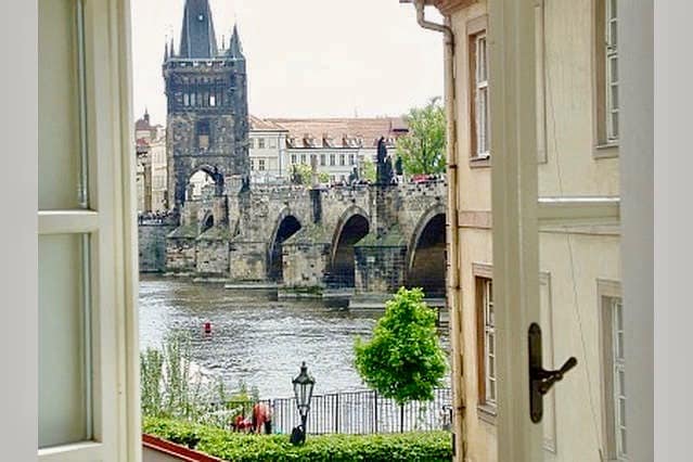 A beautifully reconstructed first fl two-bedroom flat in a 16th century building, the flat is just a wonderful few minutes walk to some of the most interesting sites in Prague, including, the Castle and The Charles Bridge. Cobble-stoned, gaslight, winding streets will charm you. Deep-set windows, thick walls contribute to the ancient romance of this flat. Stunning views of the Charles Bridge from the bedroom and castle from the living room will leave their mark long after you have checked out.