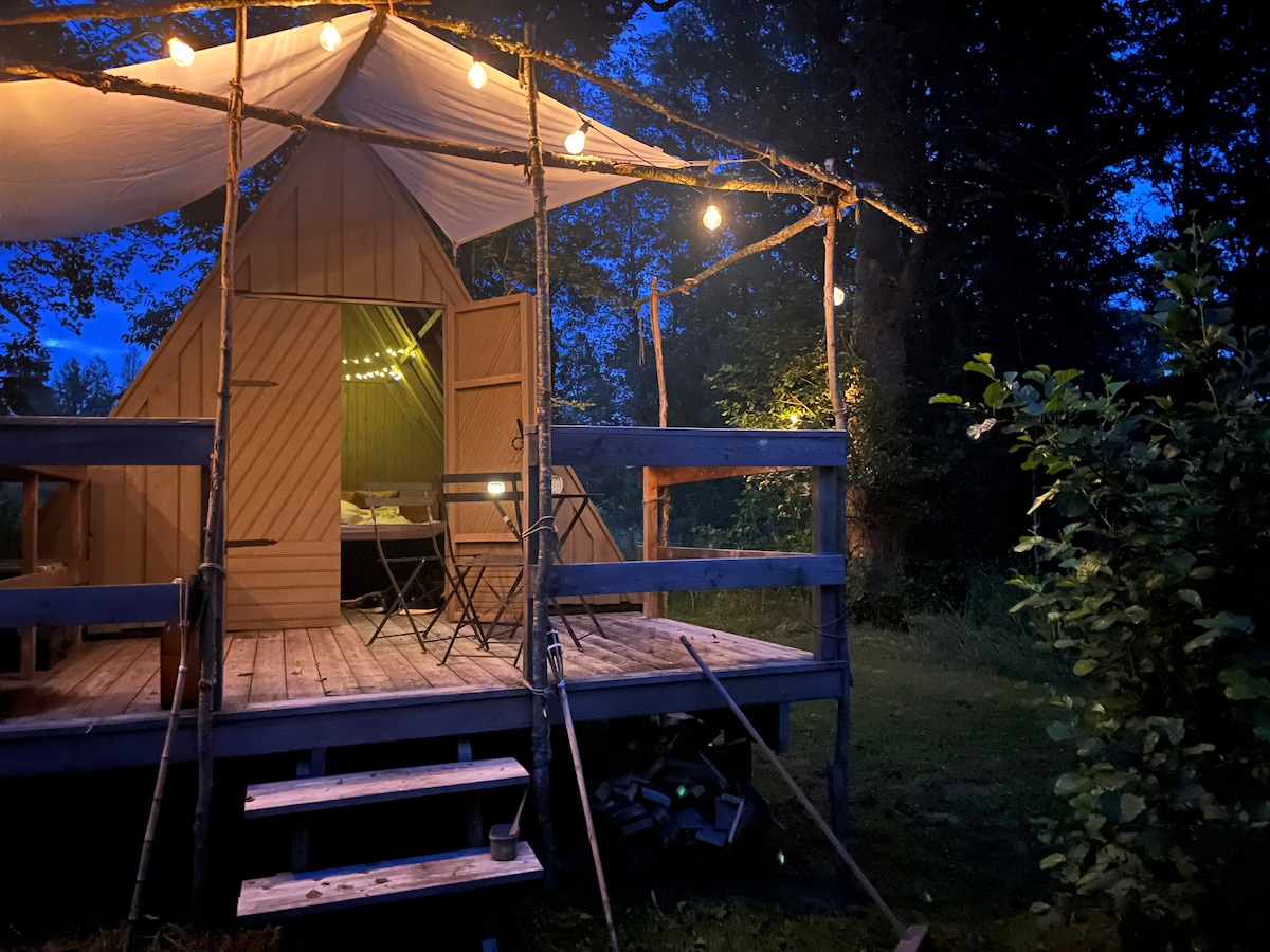 Glamping = a perfect combination of wilderness and comfort. Get a break from the city stress. Smell the flowers, listen to the birds singing, breathe fresh air and spend time together without any distractions. Stay close to nature, but enjoy the luxury of a warm bed and a fully decorated space to hang out in. We are located on the Swedish west coast, in the middle of the forest, but only a few minutes away from the beach. Bookable nights for 2026 are now available.