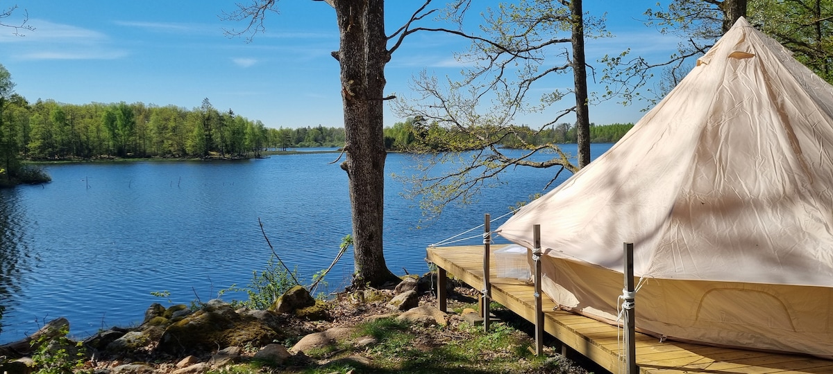 Välkommen till vår nya oas vid sjön Bellen! I hjärtat av Småland och Astrid Lindgrens hembygd. Omgivet av majestätiska ekar precis vid vattnet, ligger vårt Glampingtält med förstklassig komfort. Här njuter ni av lugnet, vattnet, skogen och djurlivet i naturen. Laga mat i det fullt utrustade uteköket. Frukostpåse samt middags alternativ erbjuds. Perfekt plats för avkoppling och rekreation. Här kan man, fiska, utöva vattenaktiviteter, bada bastu mm. Kom och skapa oförglömliga minnen hos oss.