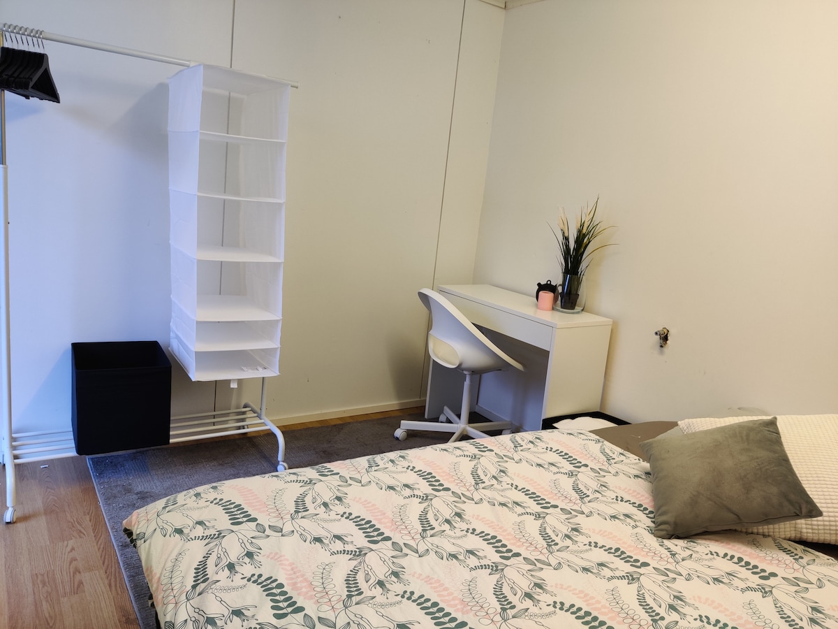 Omakotitalon yläkerrassa kalustettu huone (n. 15 m2) sekä yhteiskäytössä oleva keittiö ja kylpyhuone. Autolle pihassa lämmityspaikka. Keittiössä kaikki varusteet. Sisältää petivaatteet. Siisti ja rauhallinen palautumispaikka ja käytettävissä toimiva työtila ja nopea nettiyhteys. Talossa on sähkölämmitys, koneellinen ilmanvaihto, keskuspölynimuri ja ilmalämpöpumppu, mikä viilentää helteellä ja parantaa viihtyvyyttä.
