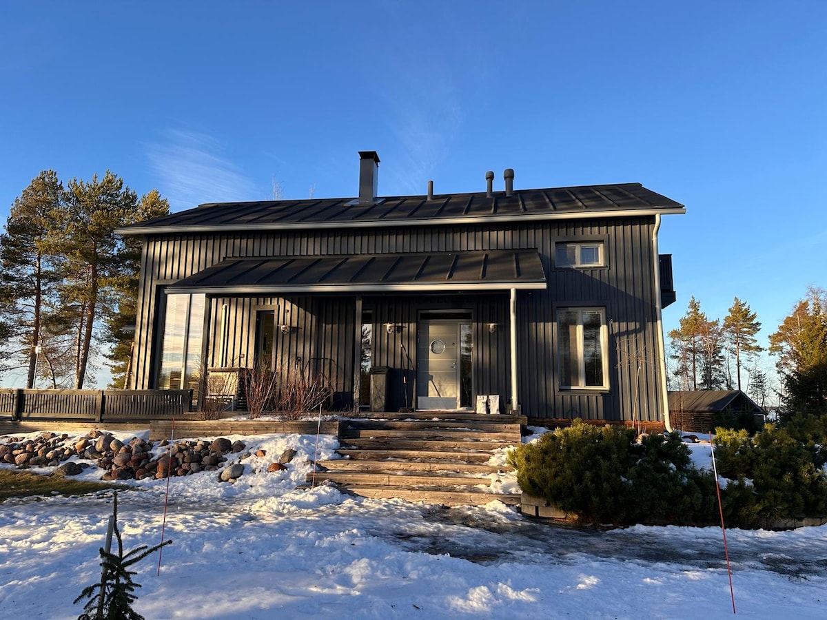 Tervetuloa Villa Kiviniemeen, joka tarjoaa täydellistä rauhaa ja luksusta Pyhännällä, Pohjois-Suomessa. Huvila sijaitsee yksityisellä paikalla niemen kärjessä, järven ympäröimänä. Täällä nautit luksuksesta keskellä kauneinta luontoa. Kohde on elämysmatkailijan unelma: käytössäsi on kolme eri saunaa ilman lisämaksua sekä valaistu avanto. Tilat ja nukkumisjärjestelyt (10 hlö): Tilaa riittää isommallekin seurueelle. Päärakennuksessa on kaikki uuden uuden ja modernin huvilan mukavuudet.