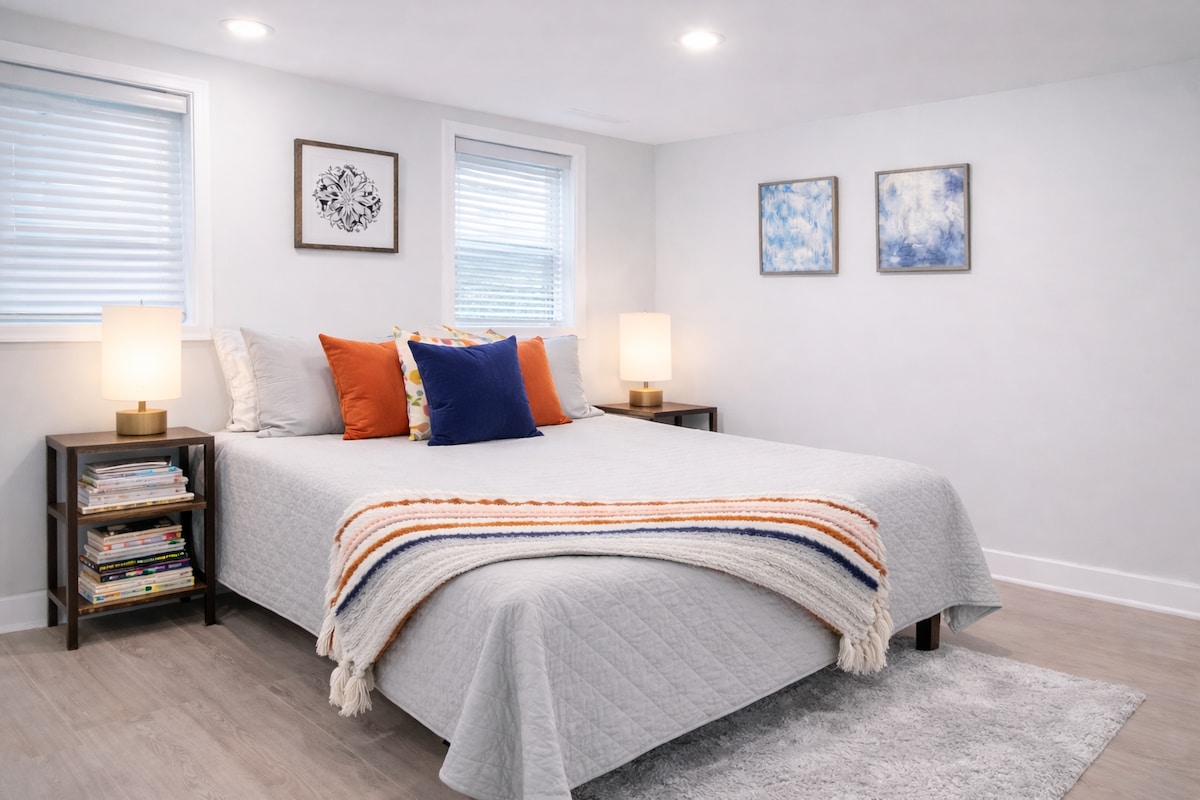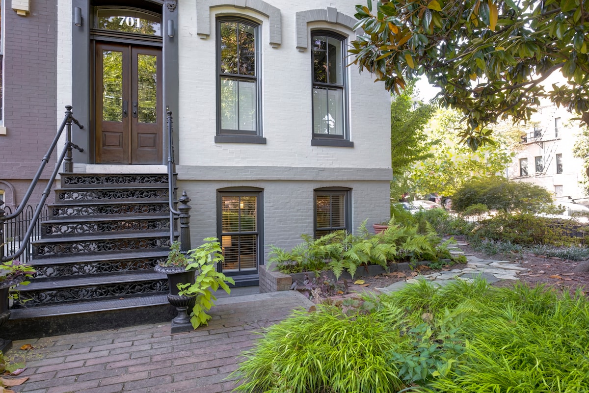 Welcome to our chic and modern basement studio in the heart of historic Capitol Hill! Recently renovated, this charming studio is located in a beautiful row house just steps away from Eastern Market, and is a short walk from the Capitol Building, Supreme Court, metro etc. We provide a top-quality queen Casper mattress, memory foam pillows, Nespresso, and a brand new washer dryer. We have invested in noise canceling insulation, but you can still hear our little kids running around at times!