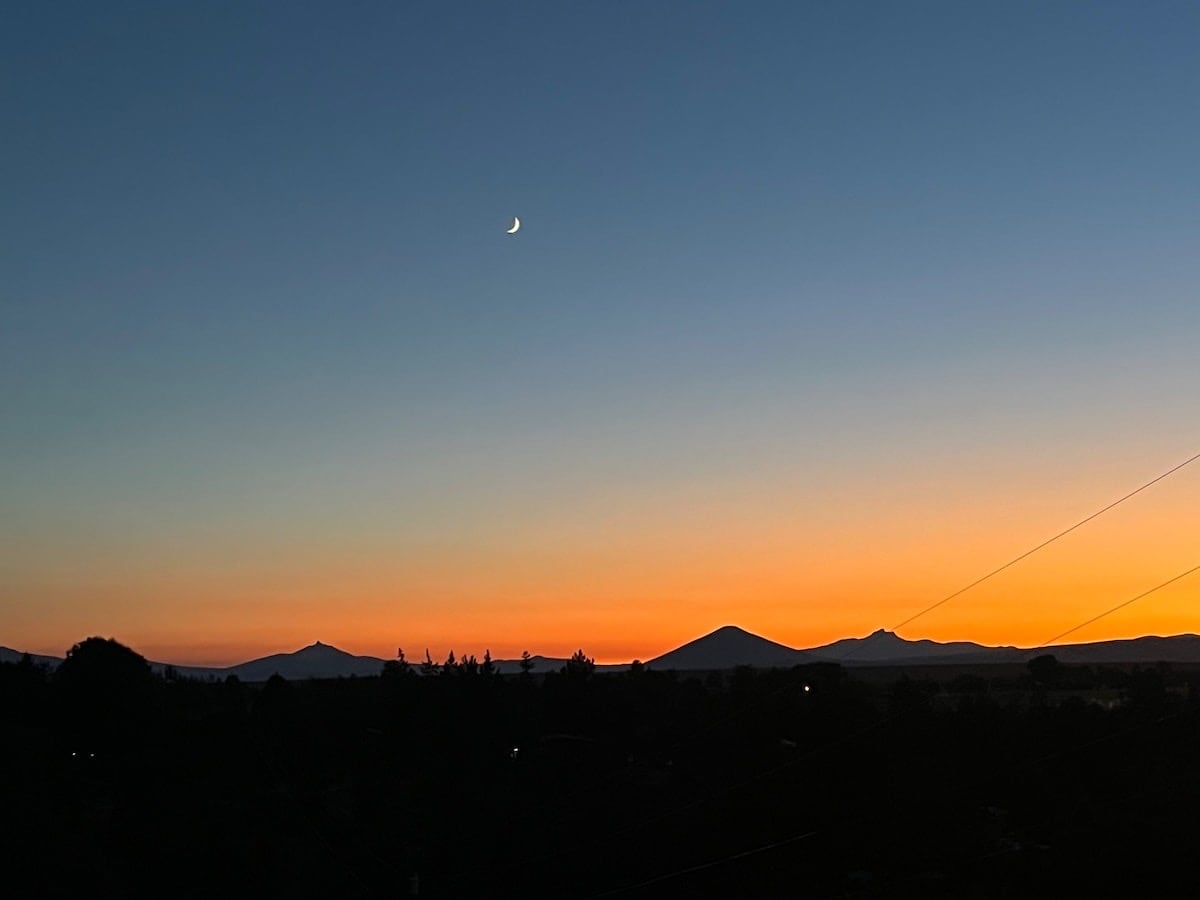 Prepare to be blown away by the astounding sunrises , sunsets and awesome moonrises you will enjoy at the Pointe of Blessing. We feel our canyon perch is a gift from God too good to keep to ourselves. Our cozy home sits atop an outcropping of rock which juts out from the canyon rim affording us unobstructed views up and down the length of the Crooked River Canyon. We overlook several holes of the Crooked River Ranch golf course and Smith Rock is visible in the distance to the South.