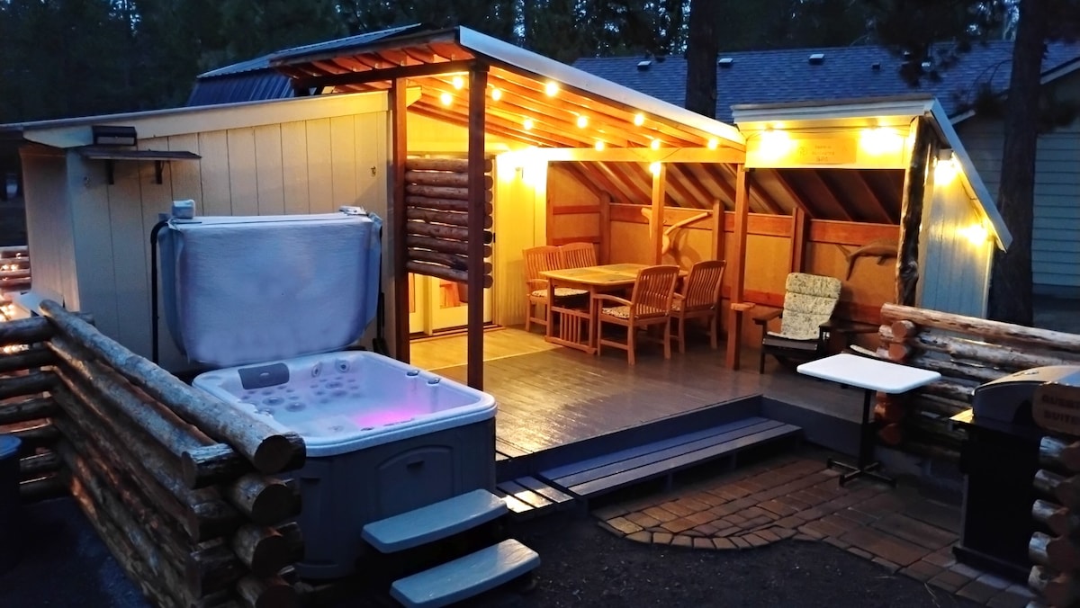 Our custom-made studio is nestled in the woods with a country feel yet close to everything Bend has to offer. Outside,we have two large decks overlooking the wildlife with beautiful mountain views. Inside this 1100 square foot studio with a loft ,we have vaulted ceilings with open beams, a pool table, hunting trophies, and handmade woodwork throughout. You will have a private studio with no shared spaces that includes two queen beds, a kitchen, a living room, a bathrom, two decks, and a hot tub.