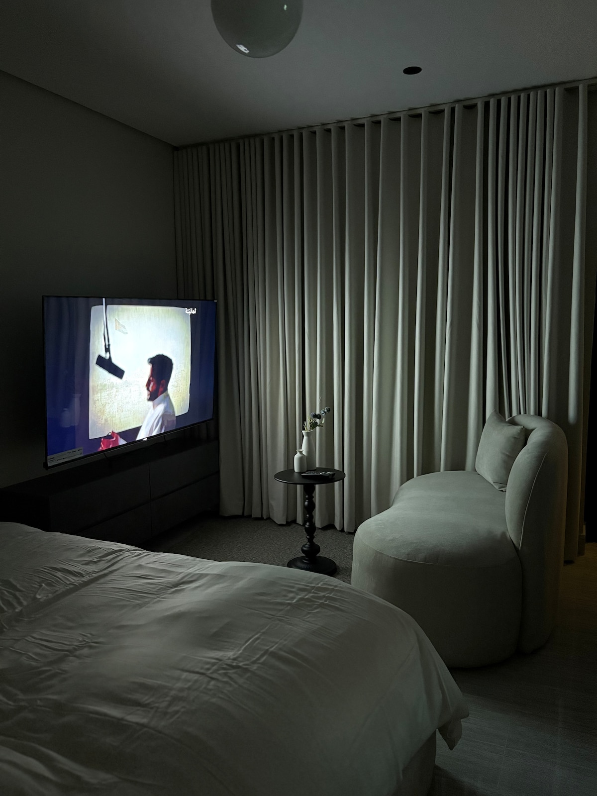 شقة مكونة من غرفة وصالة انيقه وهادئه بحي السيف – موقع مميز على بُعد دقيقة من بحر الراكة والتركات، 6 دقائق من الظهران إكسبو، و10 دقائق من جامعة الإمام عبدالرحمن بن فيصل مجهز بسرير مريح، شاشة سمارت، مكيف بارد، واي فاي، دخول ذكي، ومواقف متوفرة. مثالي للإقامات الهادئة والمميزة في قلب الخبر
