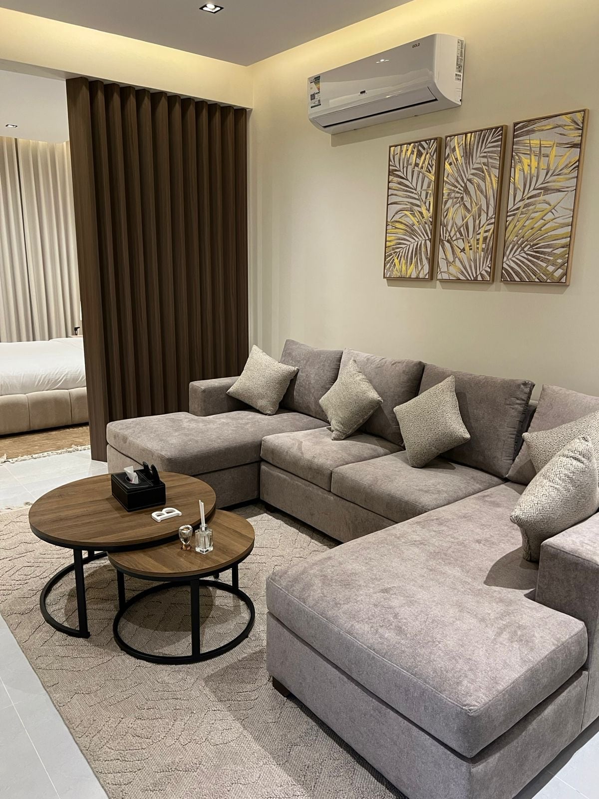 Premium apartment in Al Yasmeen with two master bedrooms, a comfortable living area, full kitchen, and dining space. The building features separate men’s and women’s gyms and offers a calm, comfortable stay ideal for families and long-term visits.