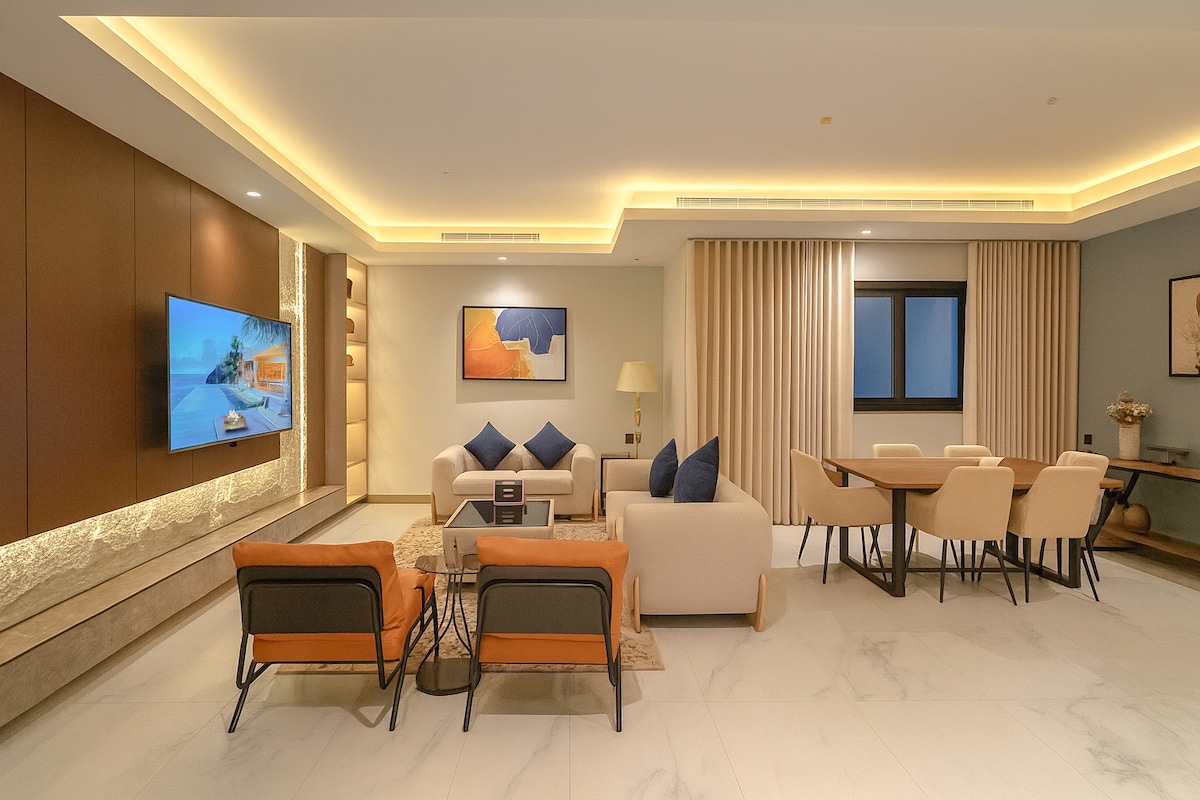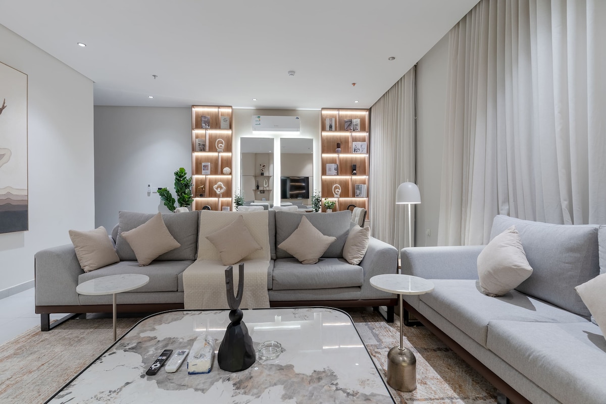 A modern luxury residence in the heart of Al Malqa, one of Riyadh’s most desired neighborhoods. This three bedroom, two and a half bathroom home delivers the look and feel of a high-end serviced apartment with the privacy of a villa. Located in Al Malqa, the apartment sits minutes from Riyadh’s leading destinations including Boulevard Riyadh City, Diriyah, Riyadh Park, and major roads like King Salman and Anas bin Malik. This is one of the strongest locations for both business and family stays.