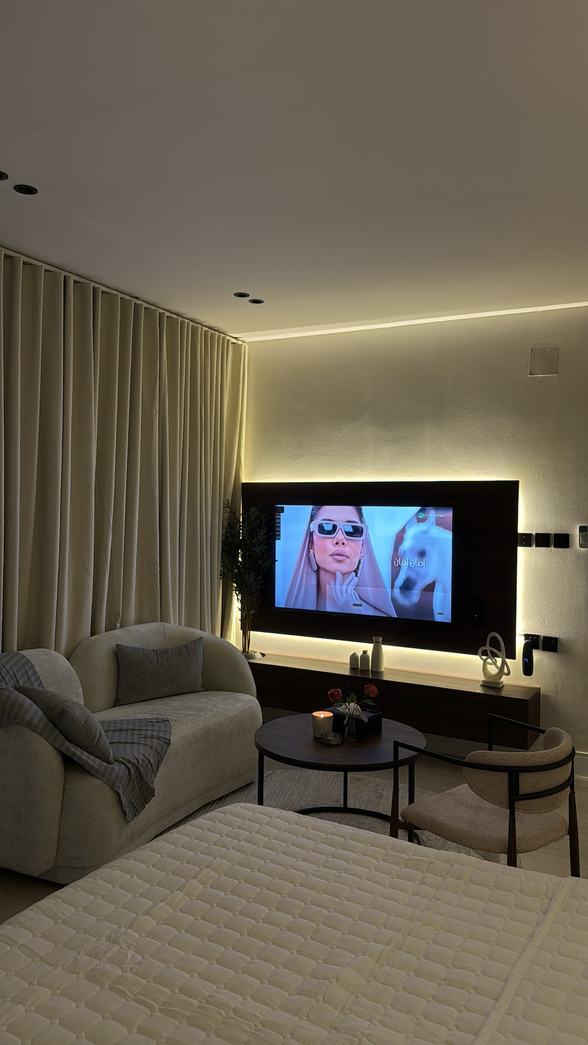This apartment is distinguished by its location and design. It is located in the heart of Riyadh. Surrounded by the Blue Line & the Red Line train stations. It takes 5 minutes to reach these stations. In addition, all services in the same neighborhood are available (restaurants, clinics, malls & supermarkets...) .The place is uniquely designed to provide an unforgettable experience.