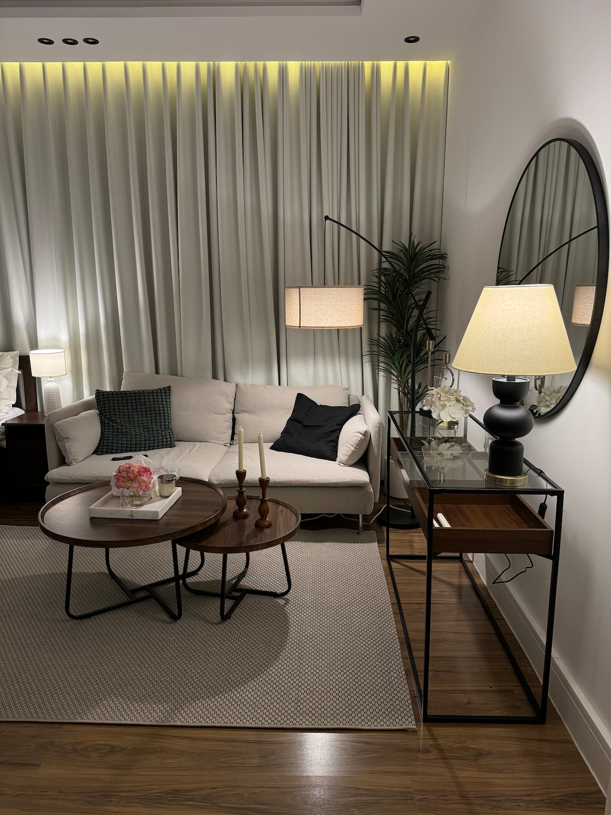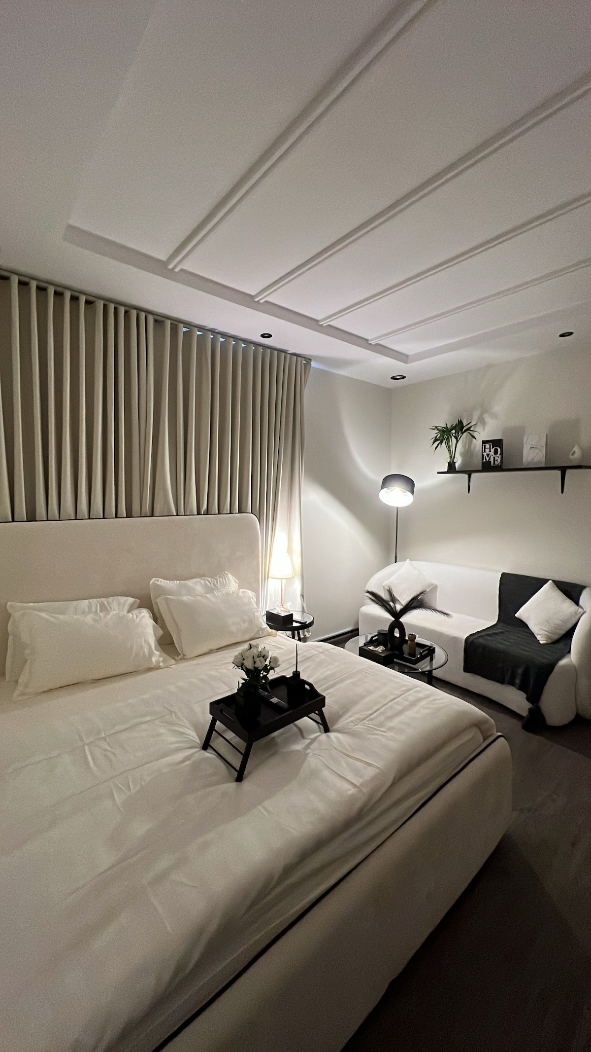A modern apartment designed for an exceptional stay, located in one of Riyadh’s finest neighborhoods with a stunning view of KAFD. It features an outdoor seating area with a screen and projector for enjoyable evenings. For your comfort, the bed includes a high-quality 14cm extra layer. “We also offer event coordination services for special occasions (including cake and accessories) for an additional fee with prior booking, ensuring an unforgettable experience “