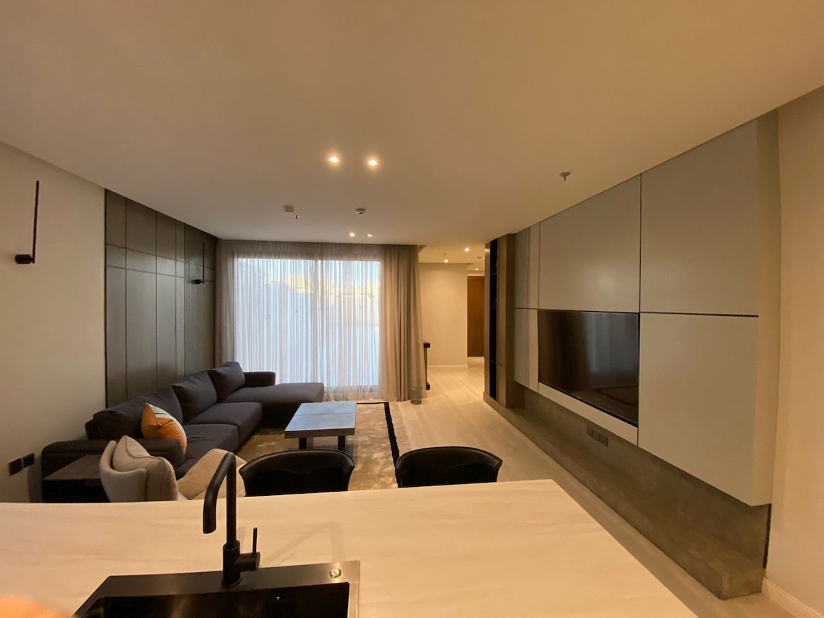Enjoy a spacious and elegant 2-bedroom apartment with a private balcony offering stunning sea views. Features include a modern kitchen, a large living room, a laundry room with washer and dryer, high-speed Wi-Fi, smart TV, air purifier, and daily housekeeping service. Perfect for families and professionals seeking comfort, space, and a peaceful coastal atmosphere.