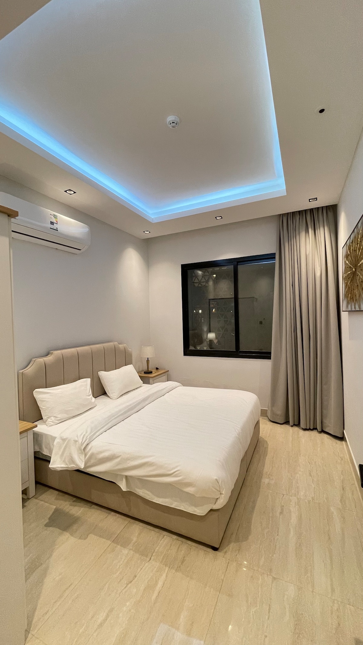 استمتع بإقامة راقية في هذه الشقة المصممة بعناية والمجهزة بأثاث يضمن لك الراحة والخصوصية وباطلالة بانورامية على مدينة الرياض المميزات: • غرفتين نوم بتصميم أنيق ومريح (سرير كينق) • حوض استحمام في فناء خاص يوفر تجربة استرخاء مميزة • جلسة خارجية في الهواء الطلق تتسع لـ6 أشخاص • صالة جلوس واسعة مع تلفزيون ذكي • مطبخ مجهز بالكامل بأحدث الأجهزة بالاضافة لبار مطل على غرفة المعيشة • دورتين مياة. الخدمات الإضافية: • إطلالة بانورامية على المدينة • دخول ذاتي باستخدام قفل ذكي • موقف خاص • إنترنت عالي السرعة