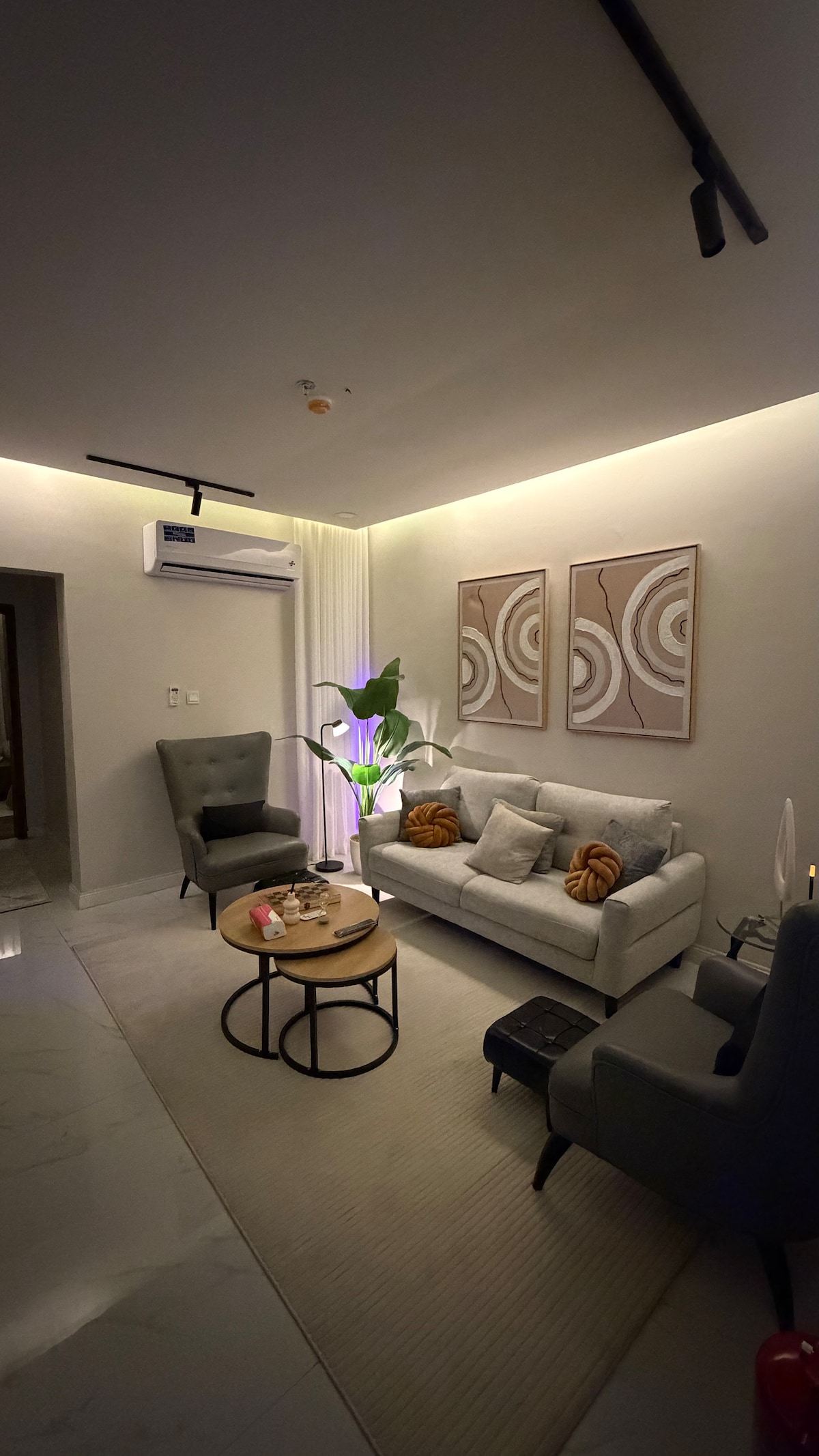 Boho-style retreat in Al Narjis! Cozy 1BR apartment with living area, equipped kitchen, 2 bathrooms, and a 4-seat dining table. Natural plants add freshness, soft lighting and warm tones create a relaxing vibe. Perfect for solo travelers, couples, or short stays. Fast Wi-Fi, AC, and parking included. Enjoy comfort, style, and a peaceful Riyadh stay in a brand-new, inviting space.