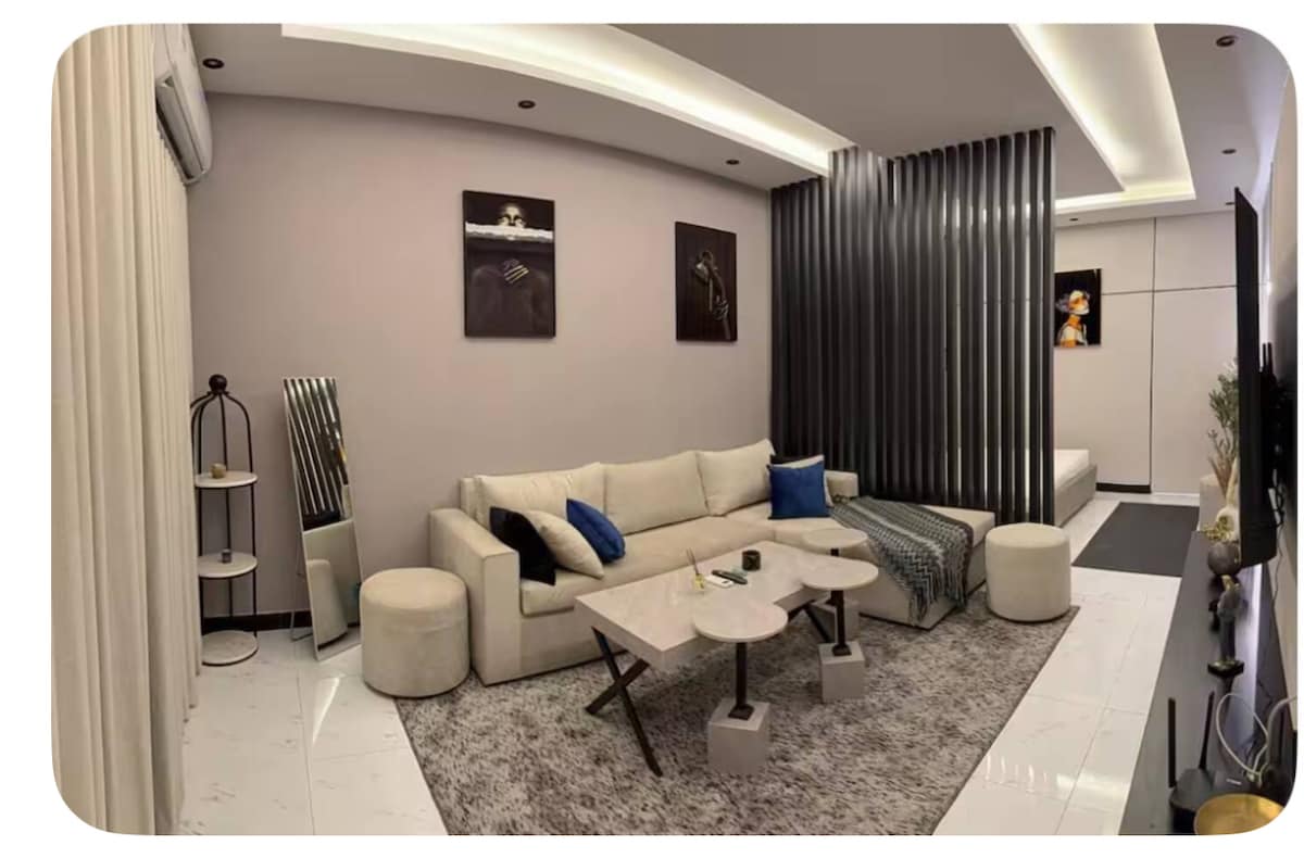Cozy Studio Retreat Near King Fahad Bridge Enjoy a peaceful stay just 3 minutes from the bridge, with prime access to: ✓ Bahrain Airport (40 min) ✓ Al Kurnish (7 min) ✓ Half Moon Beach (13 min) Your Comforts Include: • 65" Smart TV with Netflix, Prime, Shahid, OSN, Disney+, Apple TV & YouTube • Blazing-fast fiber WiFi for seamless streaming • Refreshing pool access & charming outdoor seating • Thoughtfully stocked with all essential amenities Book your cozy getaway now!