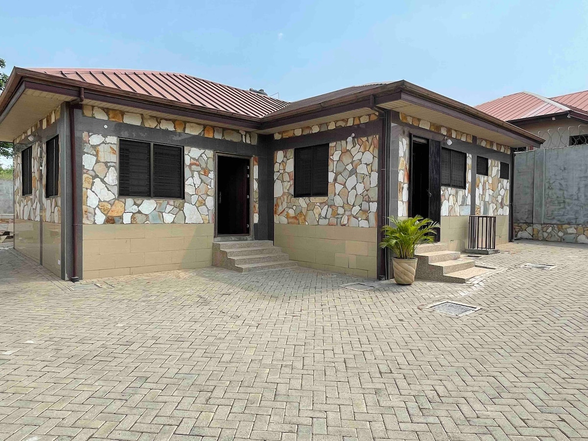 Escape and relax with whole family at this peaceful place, at KAS Valley Estate, Oyibi, just 20km from the Airport. Cozy property offering serene and beautiful hill views. Enjoy relaxing weekend getaway with all the unique comforts. Book your stay today and experience real comfort with your loved ones. Key features: •Fully Aircon rooms •WiFi free for short stays •Solar Power back up •DStv for entertainment •Water backup •Gym & swimming pool •Long stays available • Exclusive for guests use