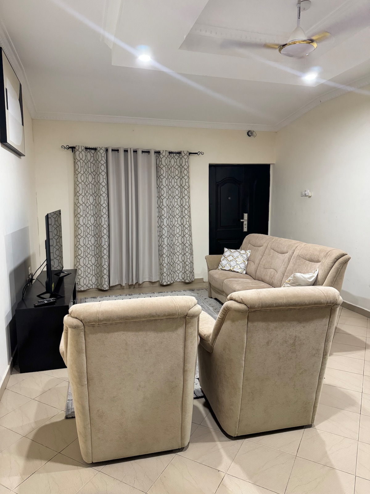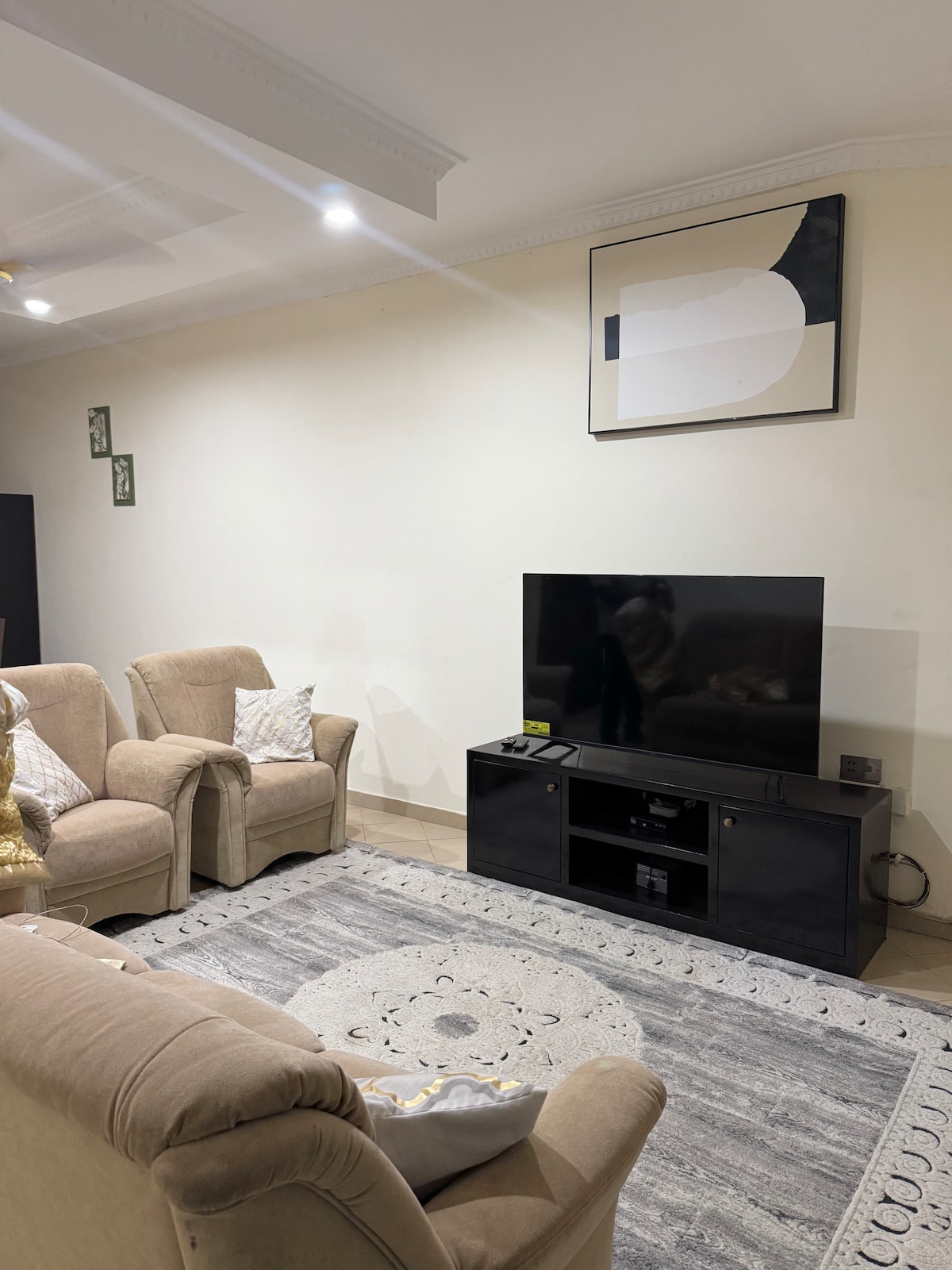 Relax in this spacious 3-bedroom en-suite apartment, perfect for up to 6 guests. Enjoy the peaceful atmosphere while being close to everything you need—fresh fruit, local snacks, and authentic cuisine just a short walk away. Convenience stores, pizza spots, and salons are only 5 minutes by car. Plus, in 15 minutes, you can visit the tranquil Aburi Botanical Gardens in Aburi. A perfect mix of comfort and convenience for your ideal getaway!