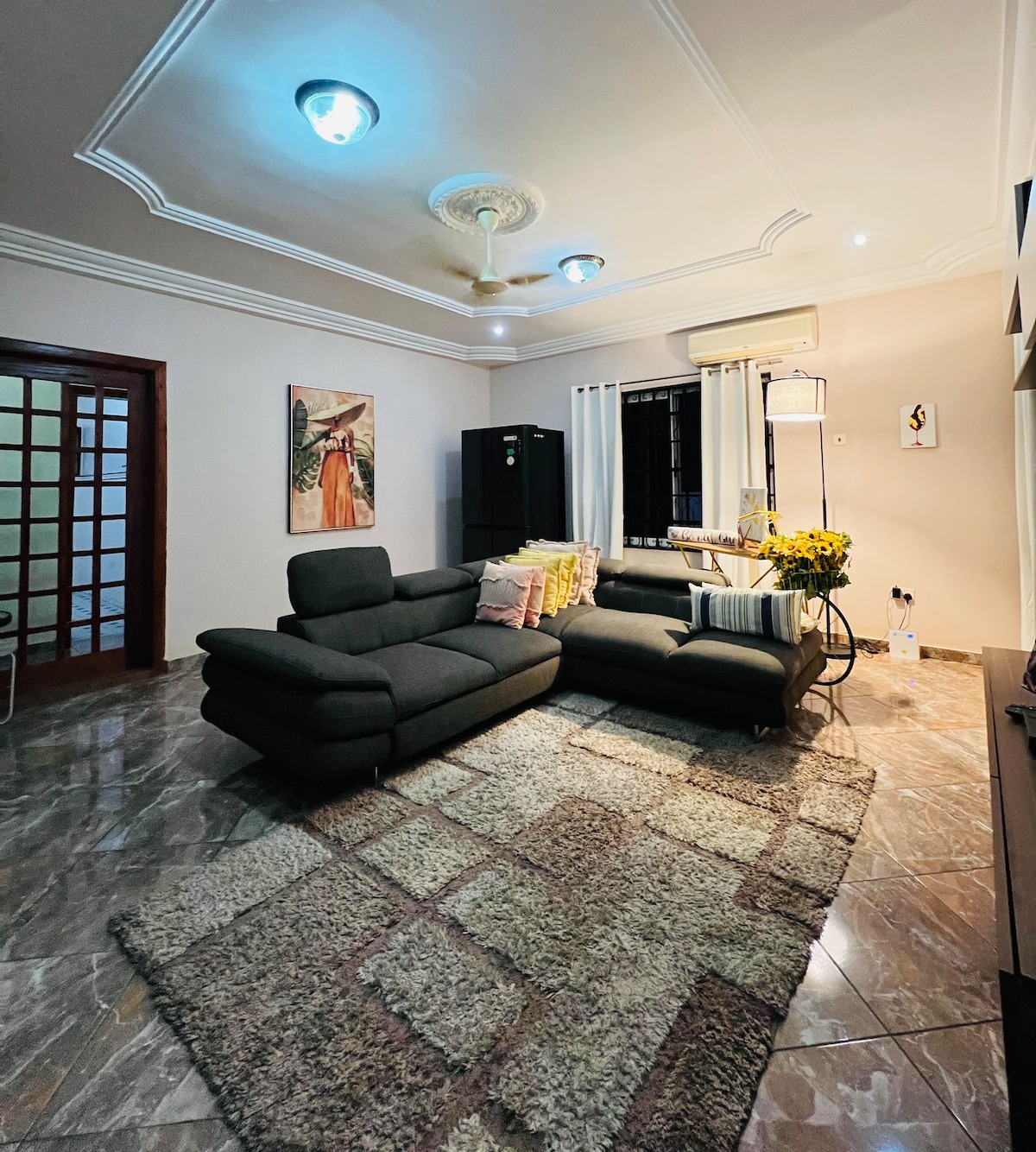 Enjoy your stay in a calm and beautiful community with lovely mountain views in Accra. This 3-bedroom, 3.5-bath townhouse is in a gated community with 24/7 security in Oyarifa. The home is about 30–45 minutes from Kotoka International Airport and within walking distance of Oyarifa Mall. It is fully furnished with a modern design and a relaxing ambiance, ideal for a perfect getaway with family and friends, offering comfort, privacy, and peace of mind throughout your stay in a serene setting.