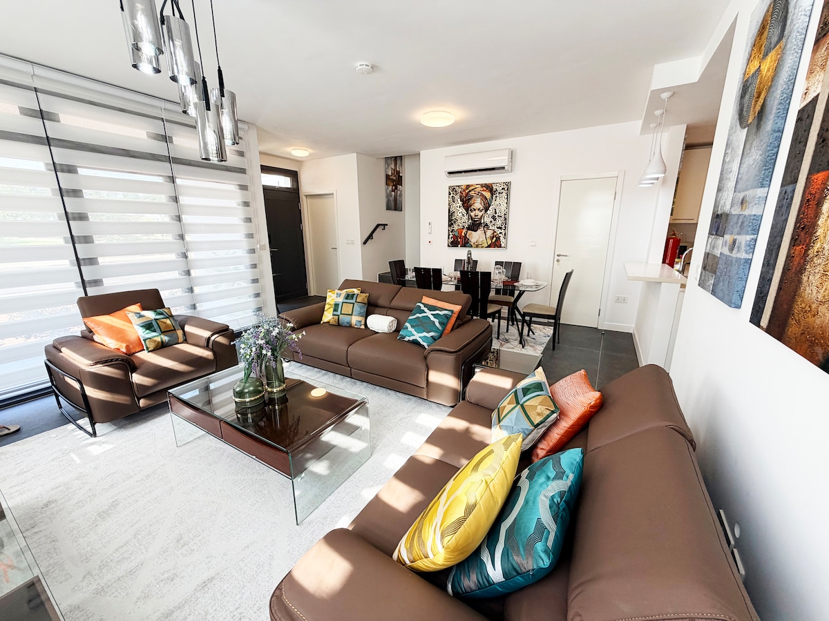 Welcome to our cozy 7-guest townhome! Enjoy a charming one-story retreat with modern amenities. Relax in the open living area, cook in the fully equipped kitchen, and dine together. 4 bedrooms ensuite with bathrooms to ensure a restful stay. Enjoy shows on the flat TV or fun game nights. Stay connected with Wi-Fi and enjoy fresh linens and toiletries. Located near attractions around Aburi, 25 - 30mins away to the airport, this is your perfect vacation getaway. Book now and make lasting memories!