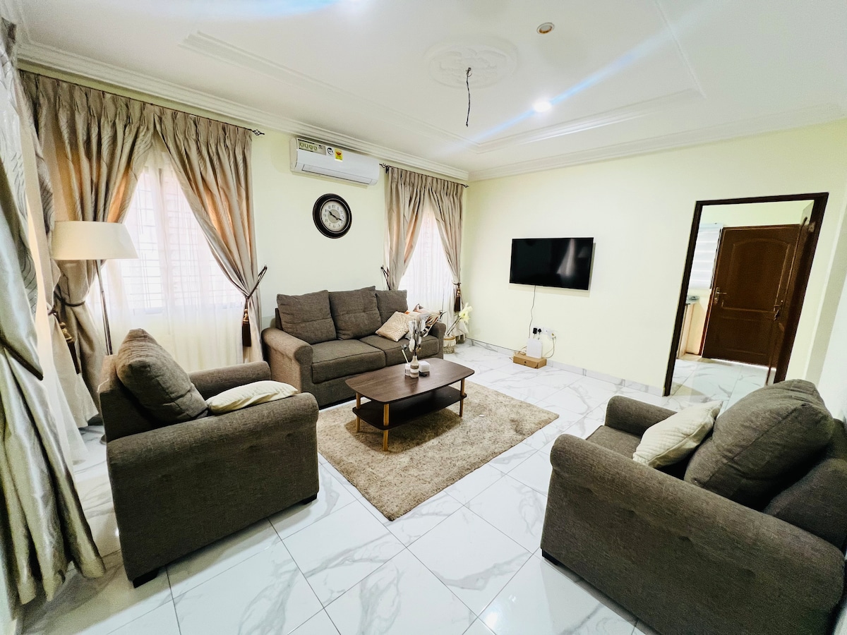 Enjoy the elegance of a modern era while staying in this Art Deco home. Beautifully decorated and spacious living room , a dining table fully fitted kitchen, and a stunningly unique tiled- bathroom. Our home has a fast and very reliable 24-hour WiFi Connectivity. We are 18 minutes away from the Sakumono Beach. We are also 25 minutes away from the Kotoka International Airport. We offer Airport pickup at a very little fee.