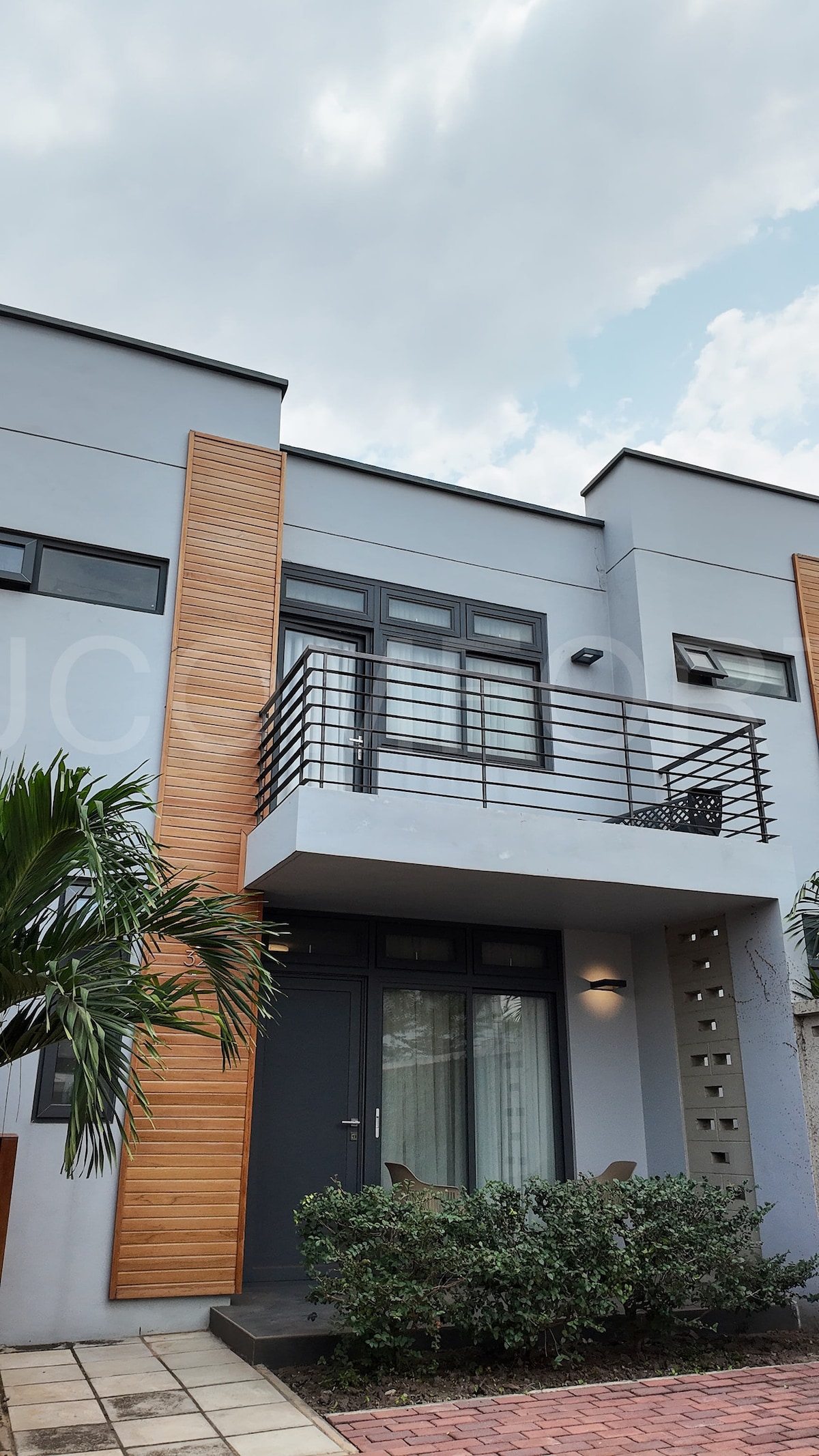A serene 3-Bedroom townhome within a gated community, with a 24/7 security guards. The community has swimming pool, children playground, and sports court. it's 10mins drive from the Presidential villa located on the Peduase mountains. Amazing panoramic view of the mountains, large walkways for exercise, central to malls and shopping centres. It has a back up generator, backyard fitted with outdoor chairs, pergola, and worktop.