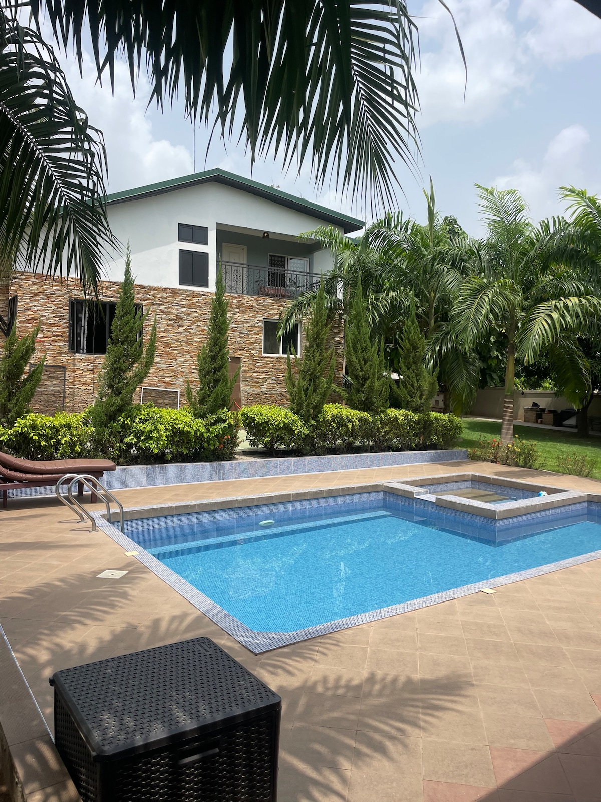 Nestled in the serene Aburi mountains is this vacation home with a swimming pool. Perfect for stay-cations and group hangouts. Serves also as a great destination for a weekend getaway from the hustle and bustle of Accra. It is just about 45 minutes drive from the Kotoka International Airport.