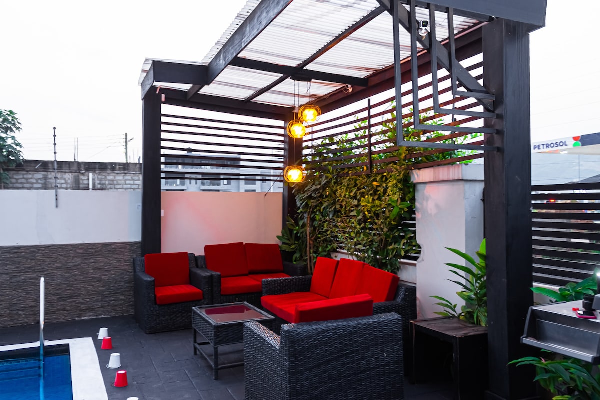 平均评分 5 分(满分 5 分),共 10 条评价时尚1卧室带泳池和发电机•距离Aburi 5分钟