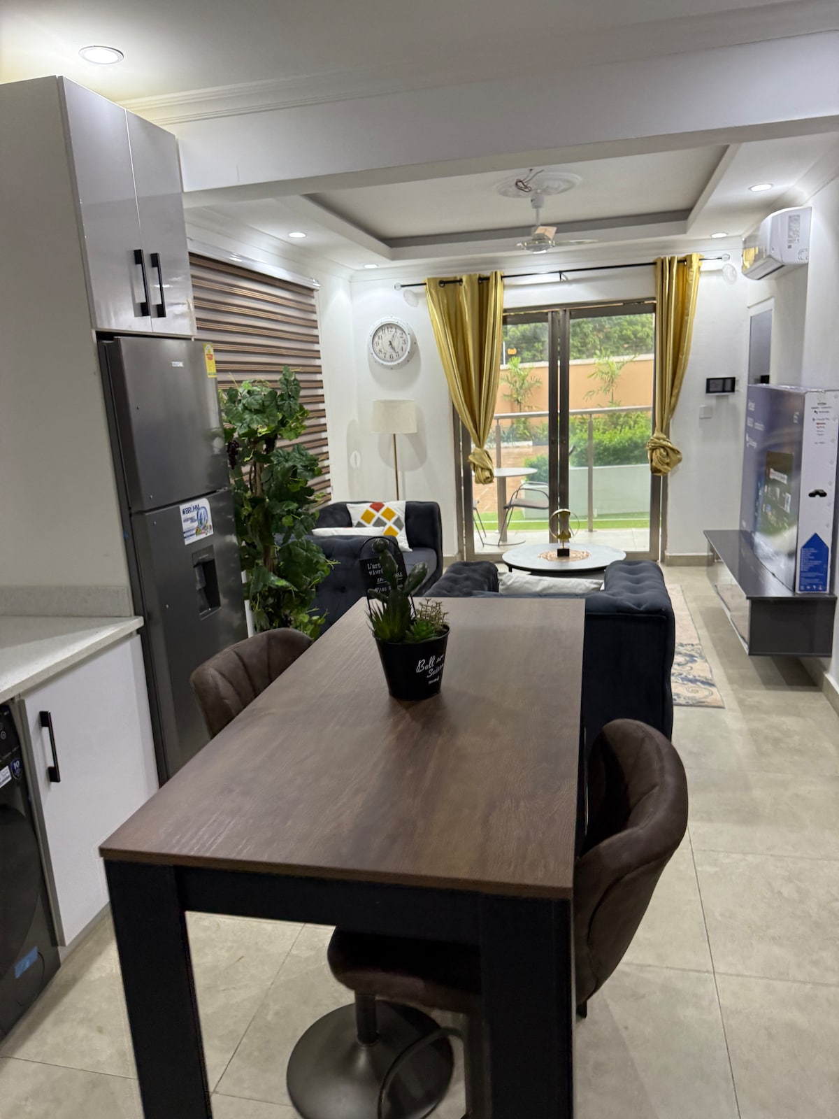 Grand suit is a 3bedroom in a gated community with 24hr security guards, CCTV surveillance and barb wire. Grand Vista is fitted with modern home appliances, Kitchen appliances amenities that make life comfortable. The living area is fitted with 80" TV set, aesthetically appealing but comfortable Sofa, well laid out dinning and bar area. The back yard offers outdoor furniture for family relaxation and dining. Tha balcony is fitted with Automatic retractable awning, fully LED.