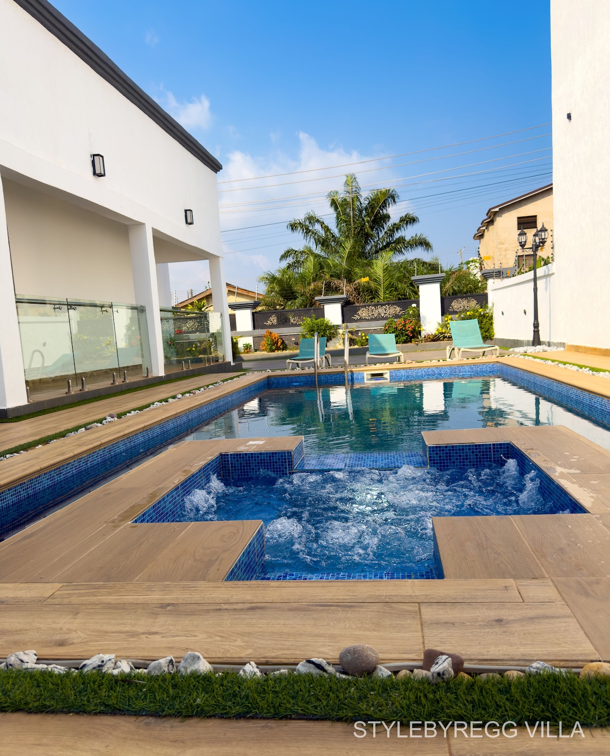 ☞ Private Pool (3.5 ft. shallow end, 6.5 ft. deep end, 10x23 pool) 🏊 ☞ Starlink 250+ Mbps WiFi ✭ Cozy King Size Beds (180x200 cm) 🛏️ ✭ Private Lux 7-seater SUV w/ chauffeur 🚘 ✭ Daily Cleaning available 🧹 ☞ Backup Generator for 24/7 Power ☞ 3850 sq. ft home ☞ 5 Smart TVs w/ Netflix DSTV & Local Channels (largest is 75 inches) ☞ Parking (onsite, 4 cars) ☞ Washer + Dryer ☞ Samsung 11.1.4 Surround Sound Bluetooth speakers ☞ Fully equipped + stocked kitchen ☞ A/C 》25 - 30 mins to the airport