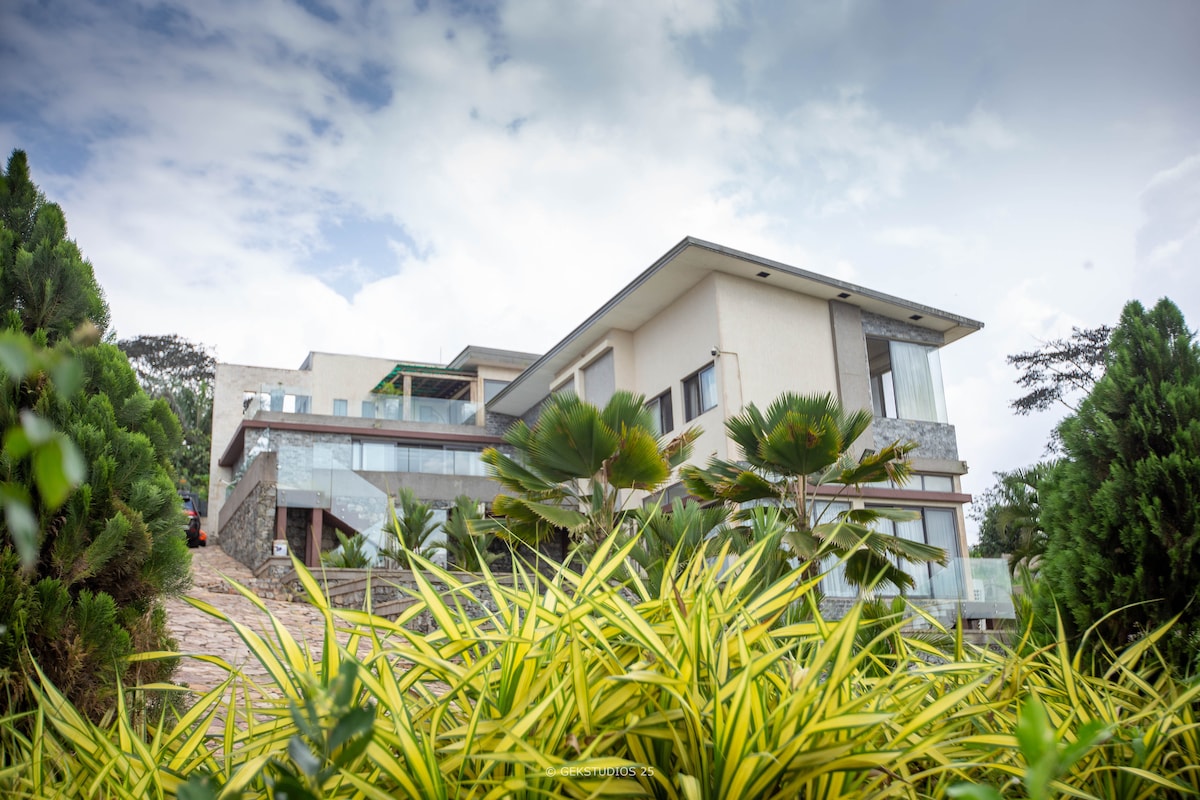 Relax with the whole family at this serene 4 bdr home located 1 hr outside of Accra in the Akuapim mountains. Surrounded by nature and beautiful sunsets, this one-acre property is the perfect escape from the city. It has a beautifully maintained lush garden and unlimited starlink WiFi connection. Designed by an award-winning South African architect you will enjoy the openness and nature views from every room. Enquire about our chef services. No parties/events allowed.